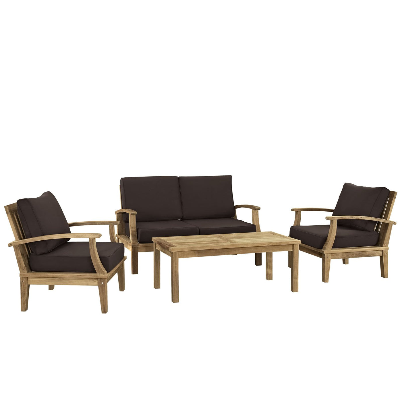 Modway Marina 4 Piece Outdoor Patio Teak Sofa Set In Natural Brown