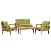 Modway Marina 4 Piece Outdoor Patio Teak Sofa Set In Natural Peridot