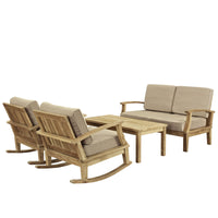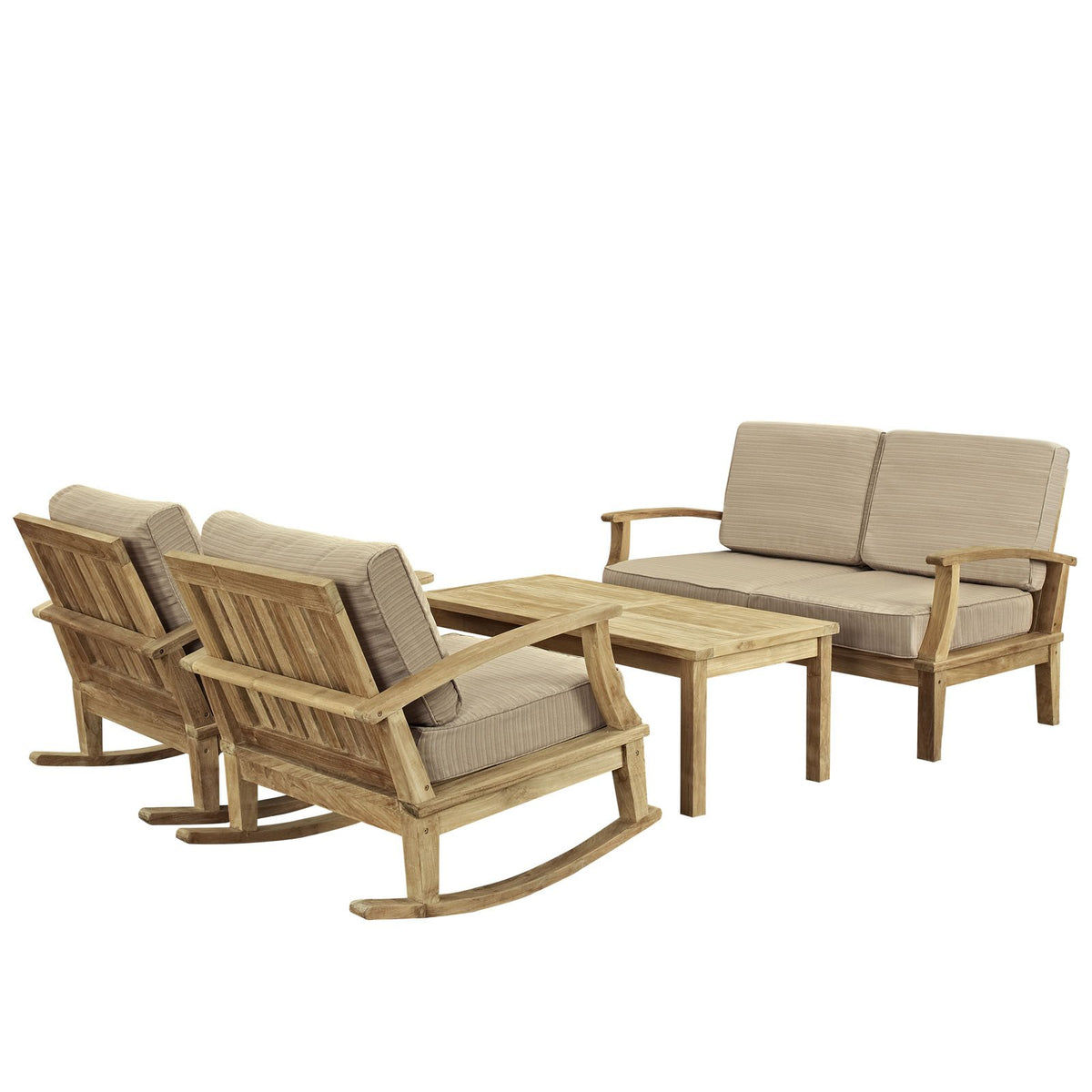 Modway Marina 4 Piece Outdoor Patio Teak Sofa Set in Natural Tan