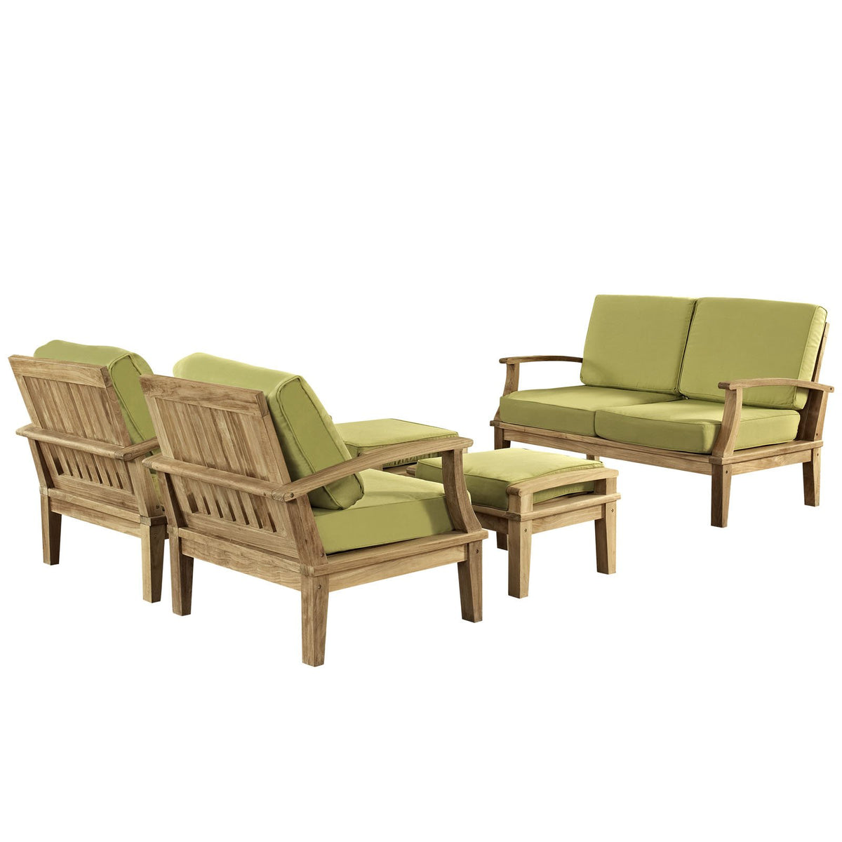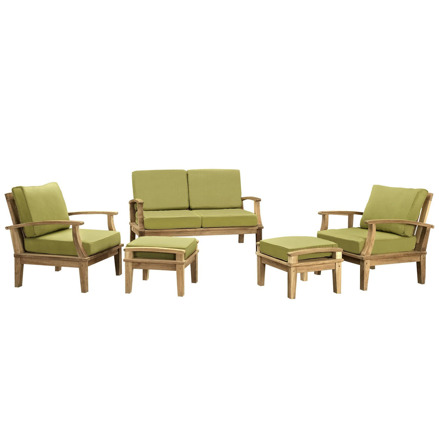 Modway Marina 5 Piece Outdoor Patio Teak Sofa Set In Natural Peridot