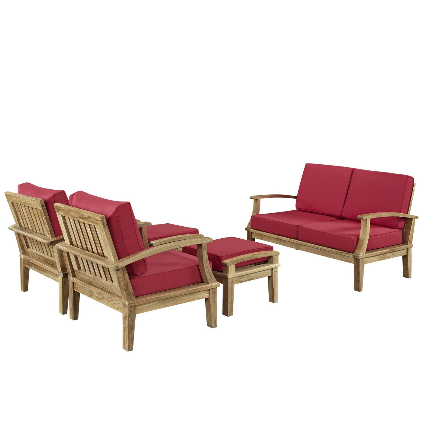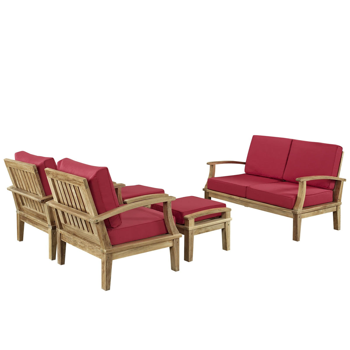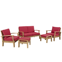 Modway Marina 5 Piece Outdoor Patio Teak Sofa Set in Natural Red