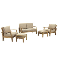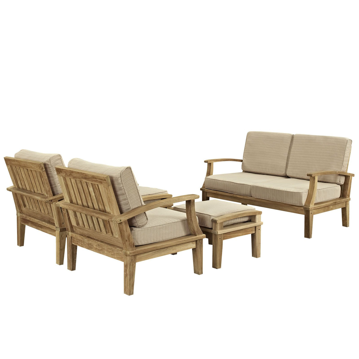 Modway Marina 5 Piece Outdoor Patio Teak Sofa Set In Natural Tan