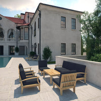 Solid teak wood construction | Richly textured wood graining | Water & UV Resistant Cushions | Machine Washable Covers