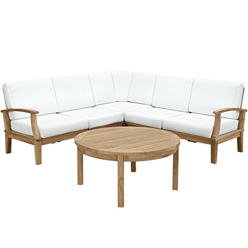 Modway Marina 6 Piece Outdoor Patio Teak Sofa Set in Natural White