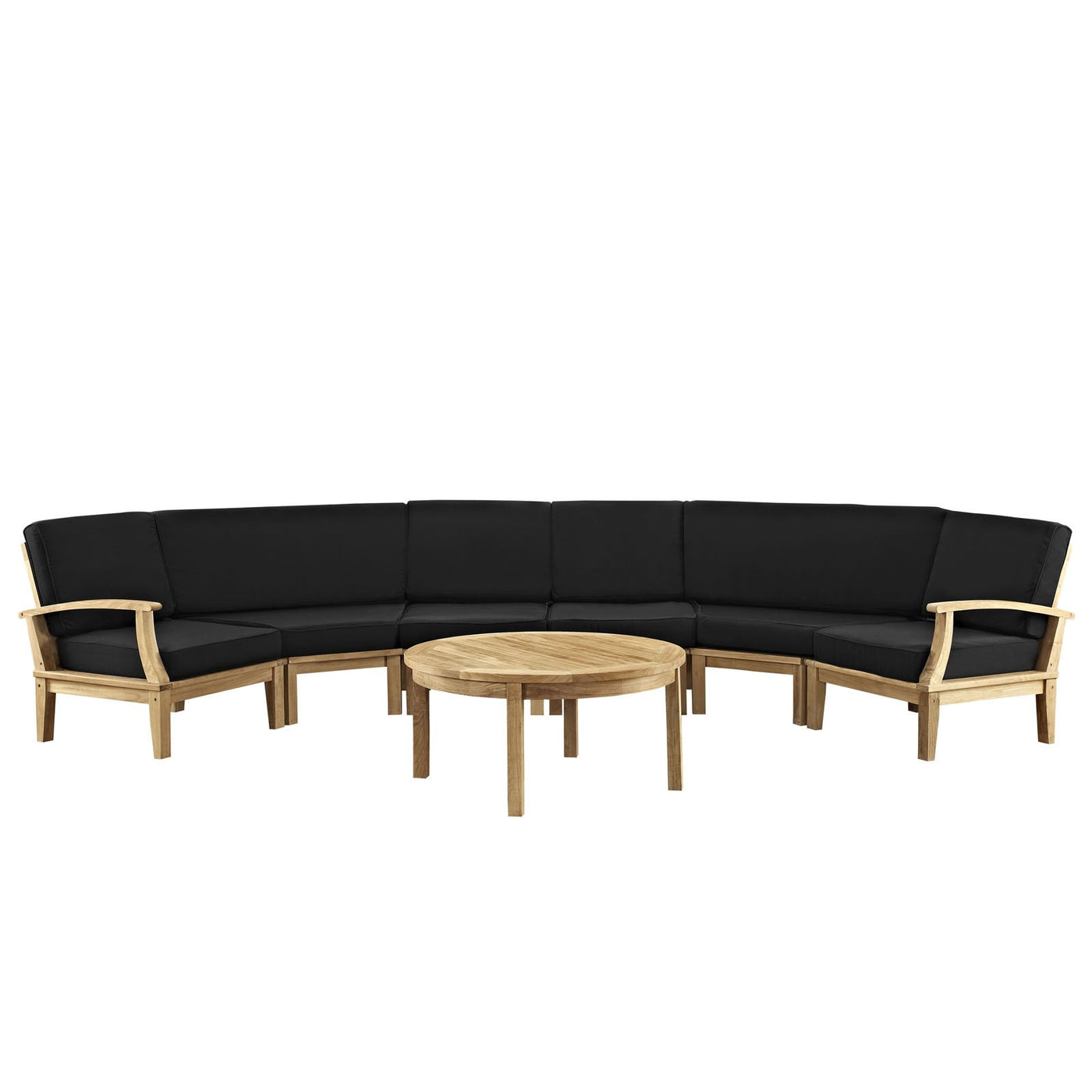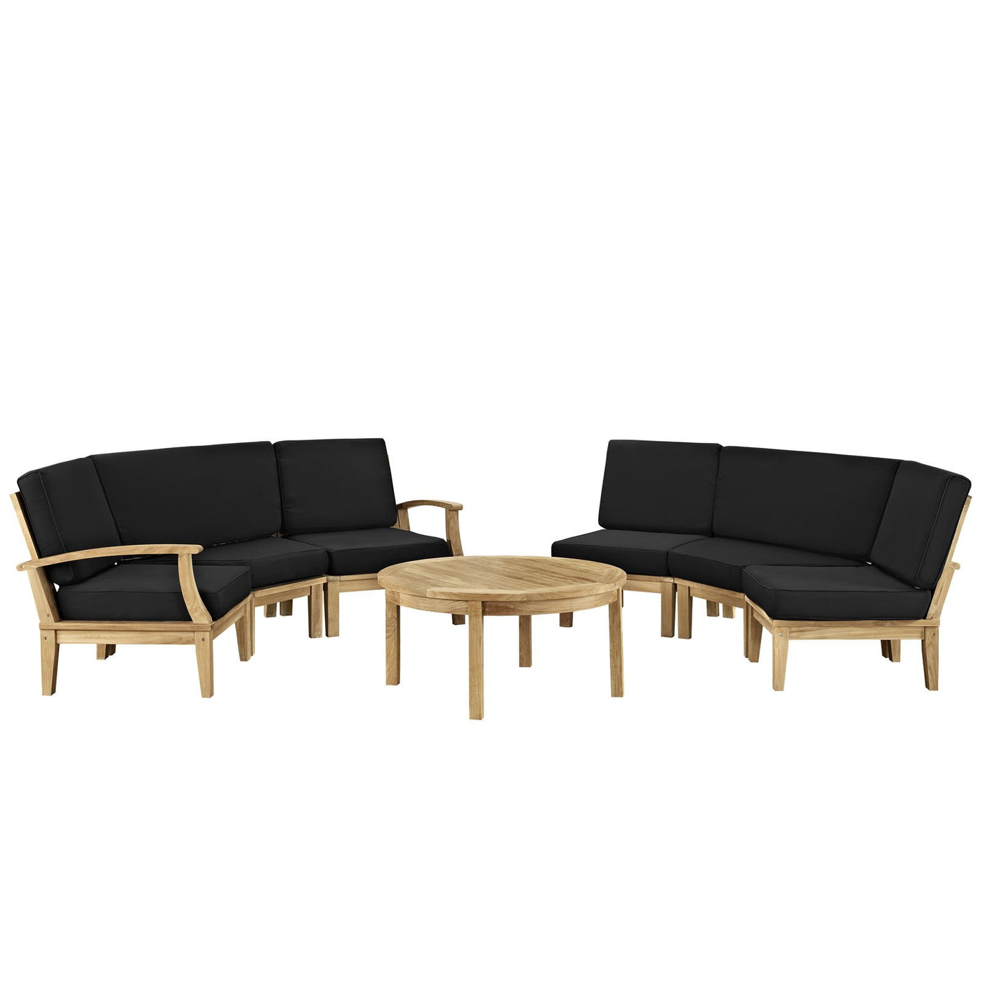 Modway Marina 7 Piece Outdoor Patio Teak Sofa Set In Natural Black