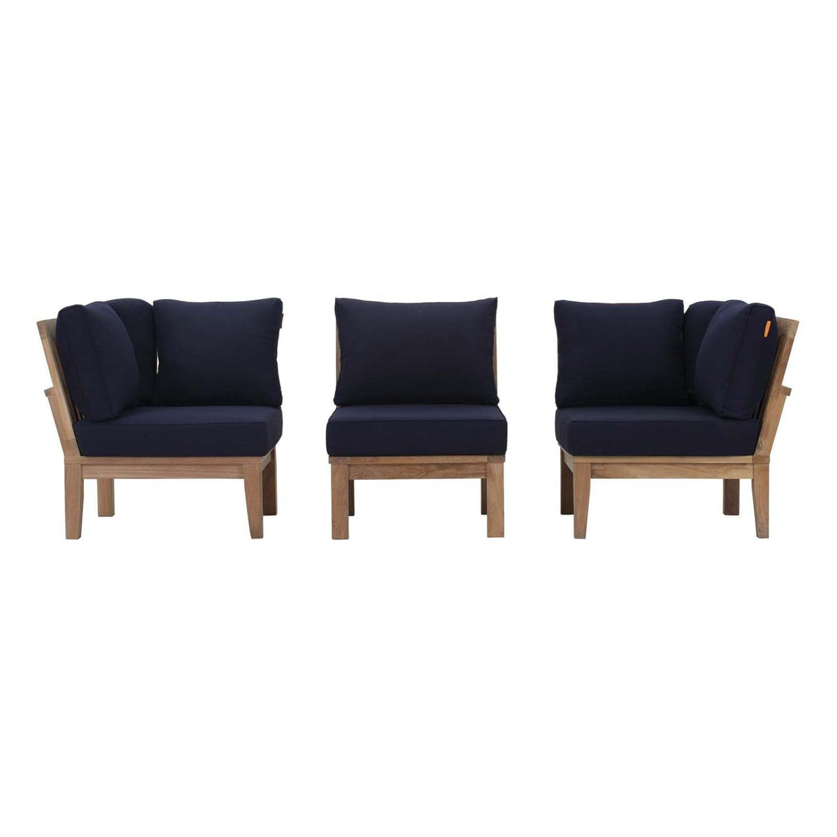 Modway Marina 7 Piece Outdoor Patio Teak Sofa Set in Natural Navy