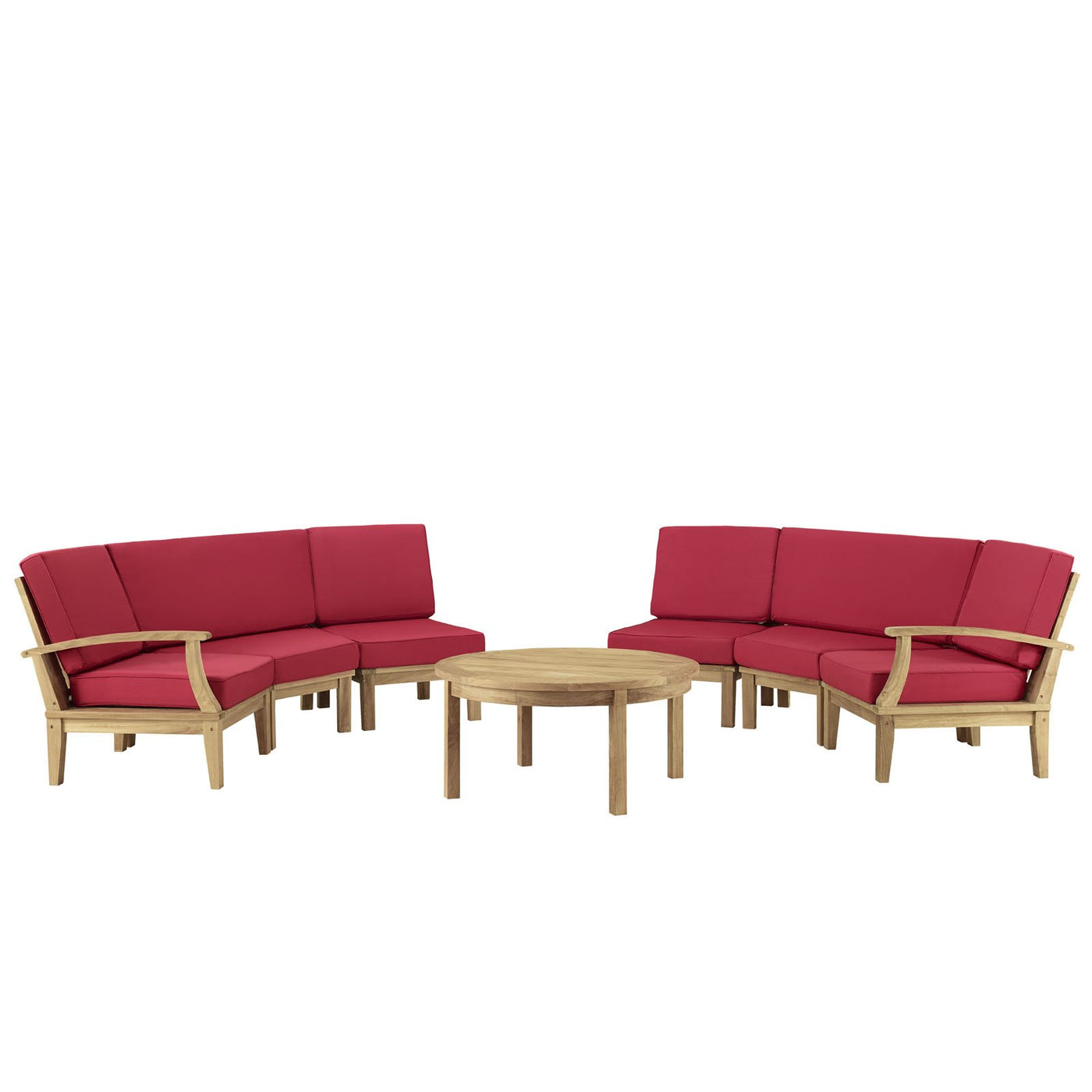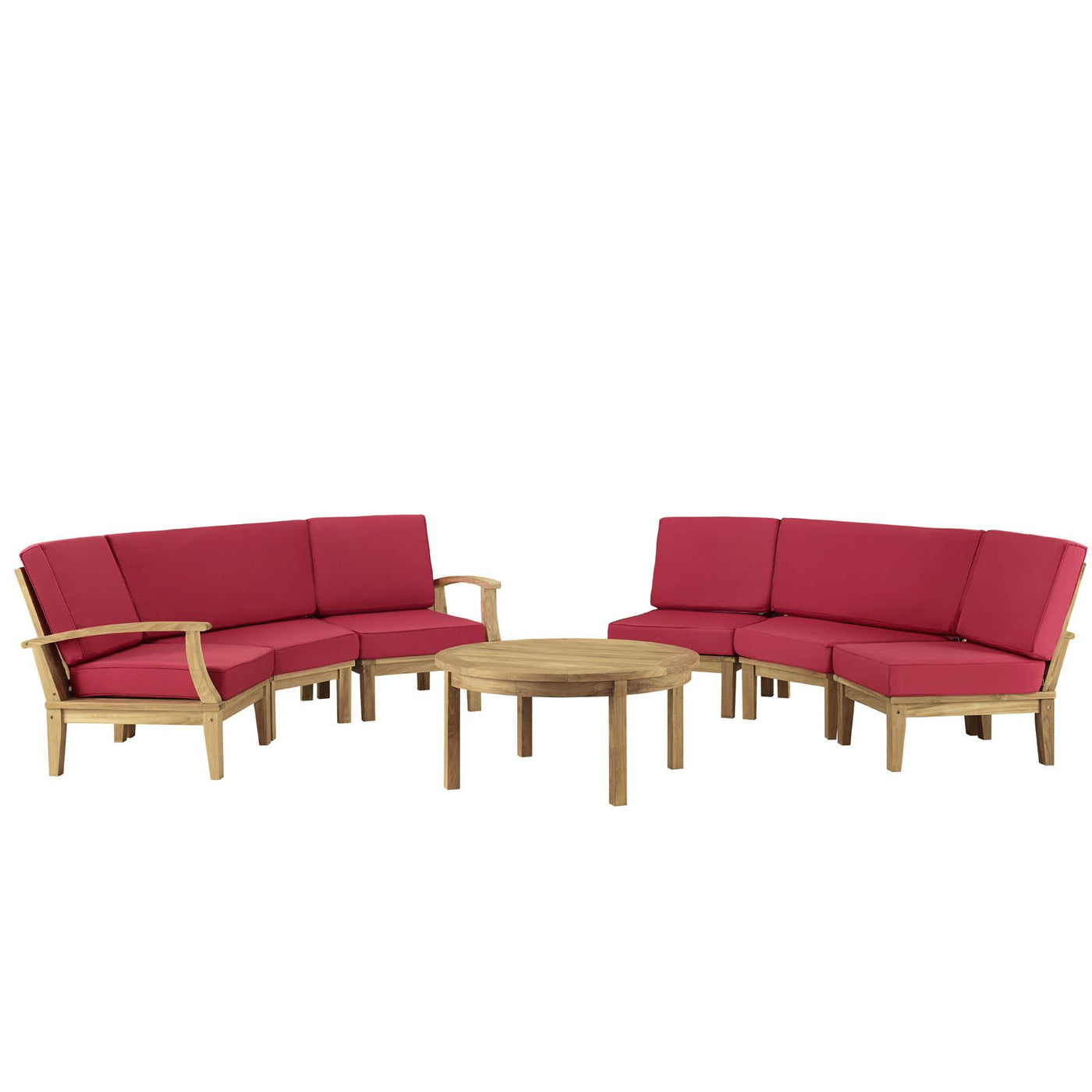 Modway Marina 7 Piece Outdoor Patio Teak Sofa Set In Natural Red