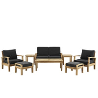 Modway Marina 8 Piece Outdoor Patio Teak Sofa Set In Natural Black