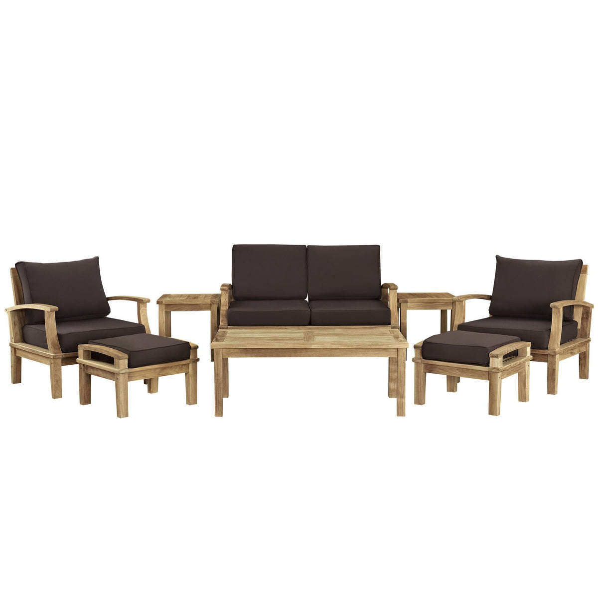 Modway Marina 8 Piece Outdoor Patio Teak Sofa Set In Natural Brown