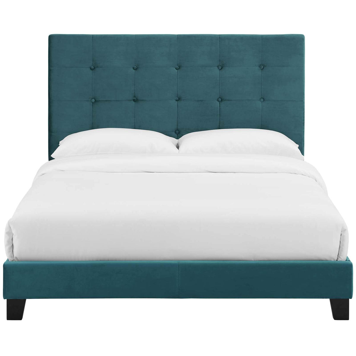 Modway Melanie Performance Velvet Upholstered Tufted Queen Platform Bed In Sea Blue