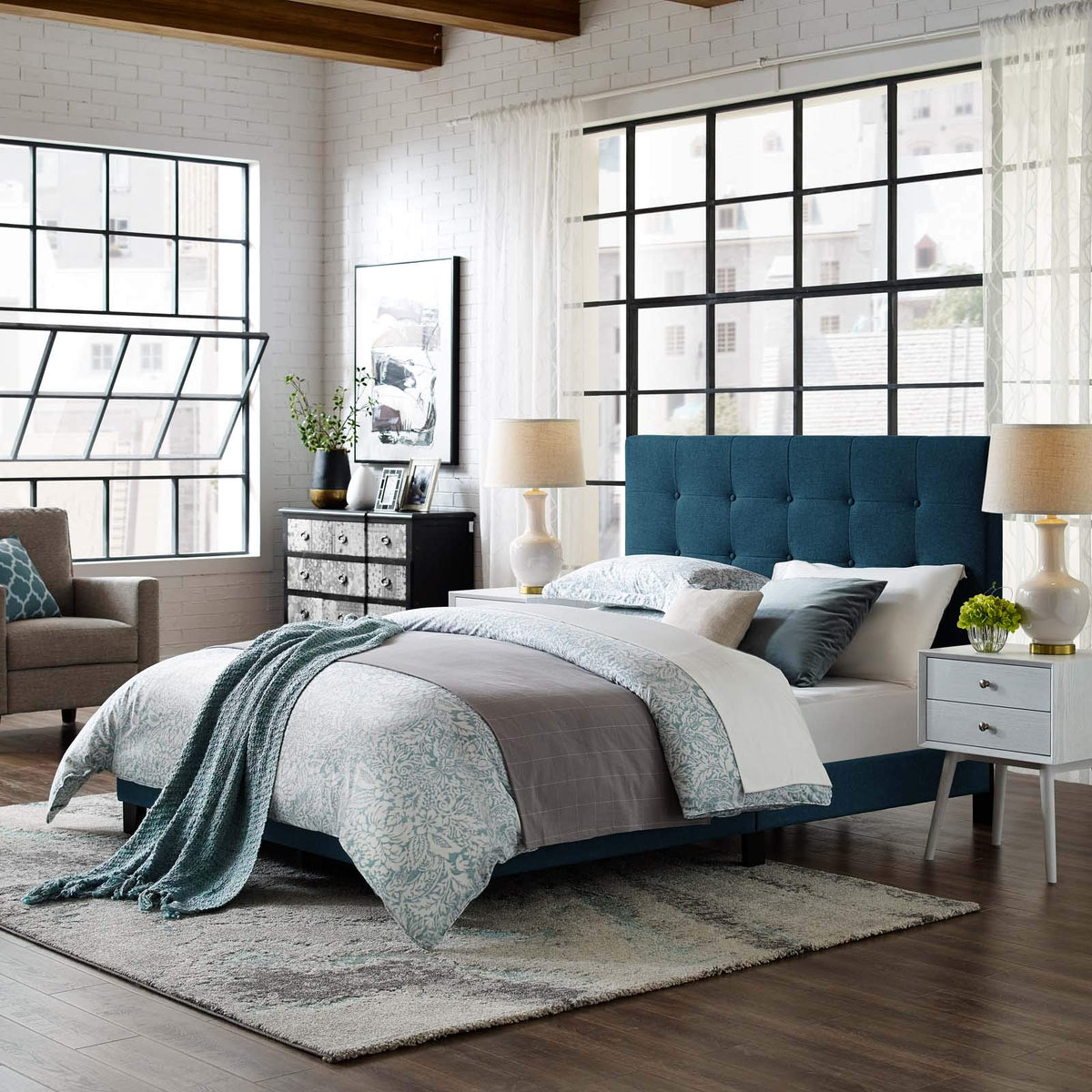 Modway Melanie Tufted Fabric Upholstered Queen Platform Bed In Azure
