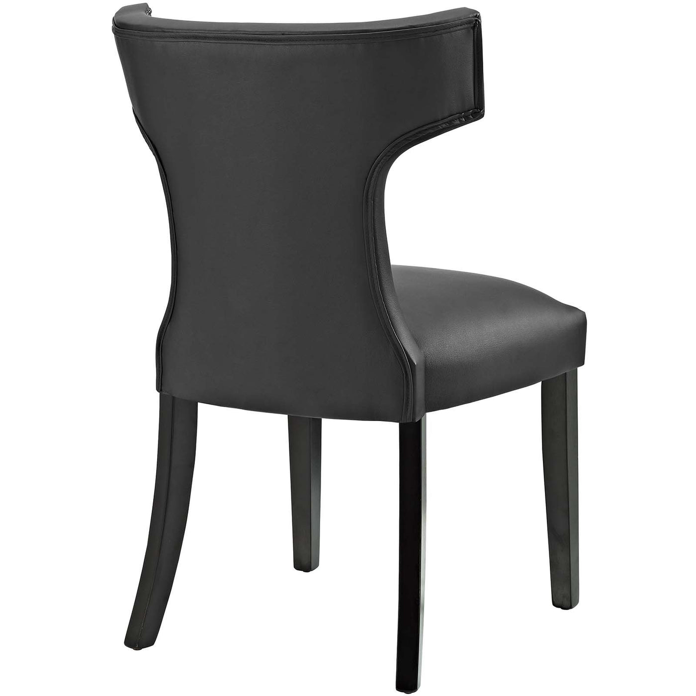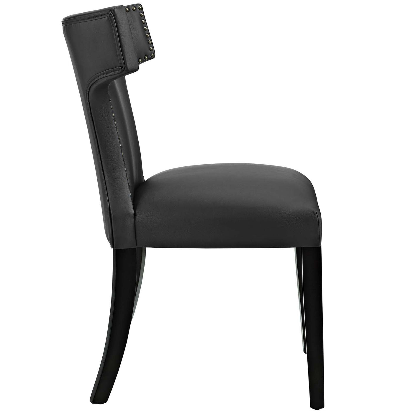 Transform Your Dining Decor With The Broadly Designed Curve Dining Side Chair. Sweeping Lines Complement A Minimalist Shape For A Chic Look Studded With Nailhead Trim. Curve Comes Generously Padded With Dense Foam Covered In Vinyl, Non-Marking Foot Caps, And Delivers Just The Right Touch Of Finesse With Tapered Wood Legs. Sporting An Hourglass Shape, Curve Works Well In A Variety Of Dining Room Arrangements.