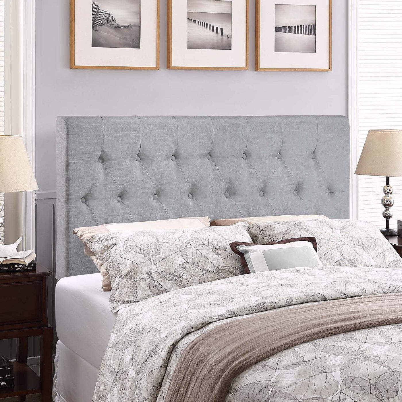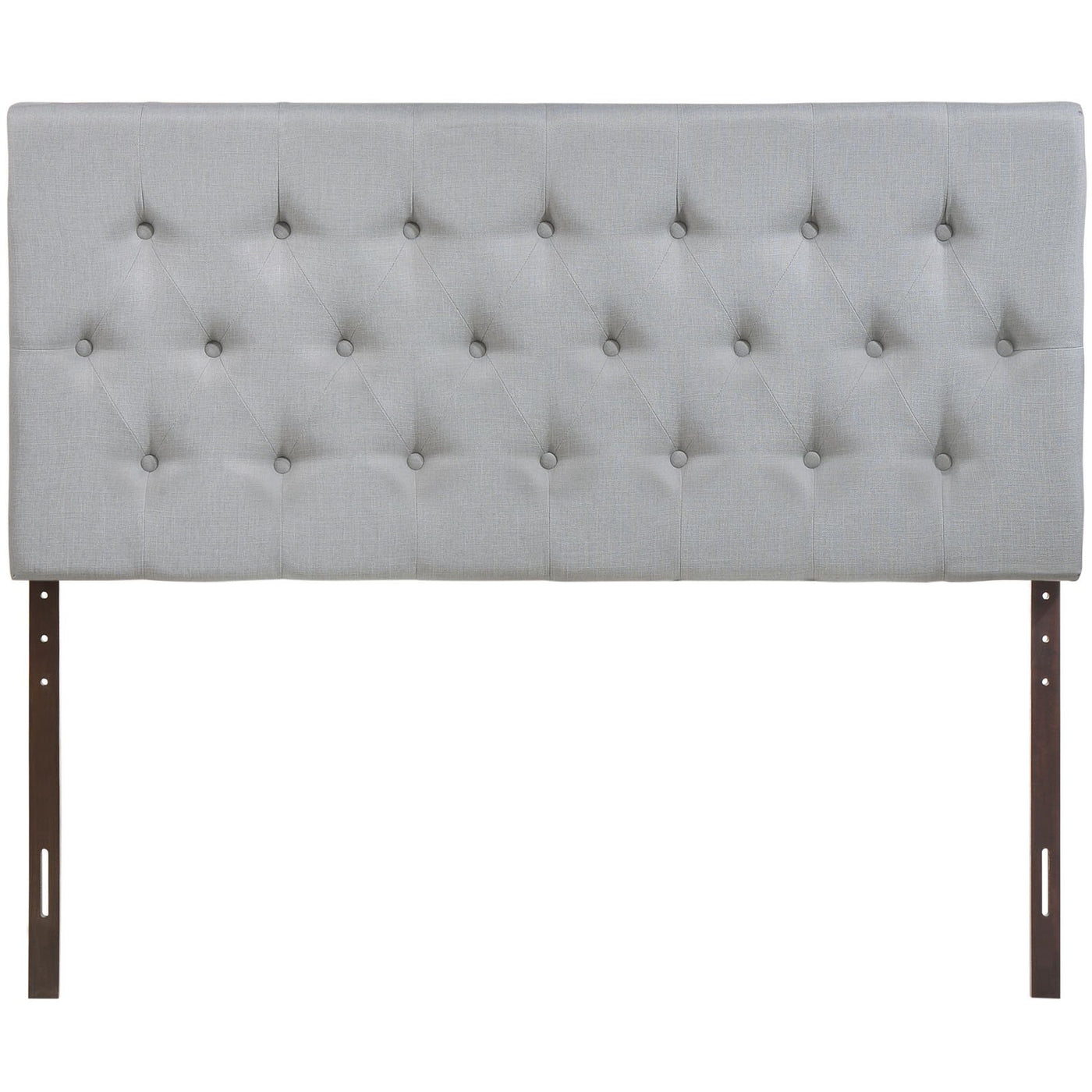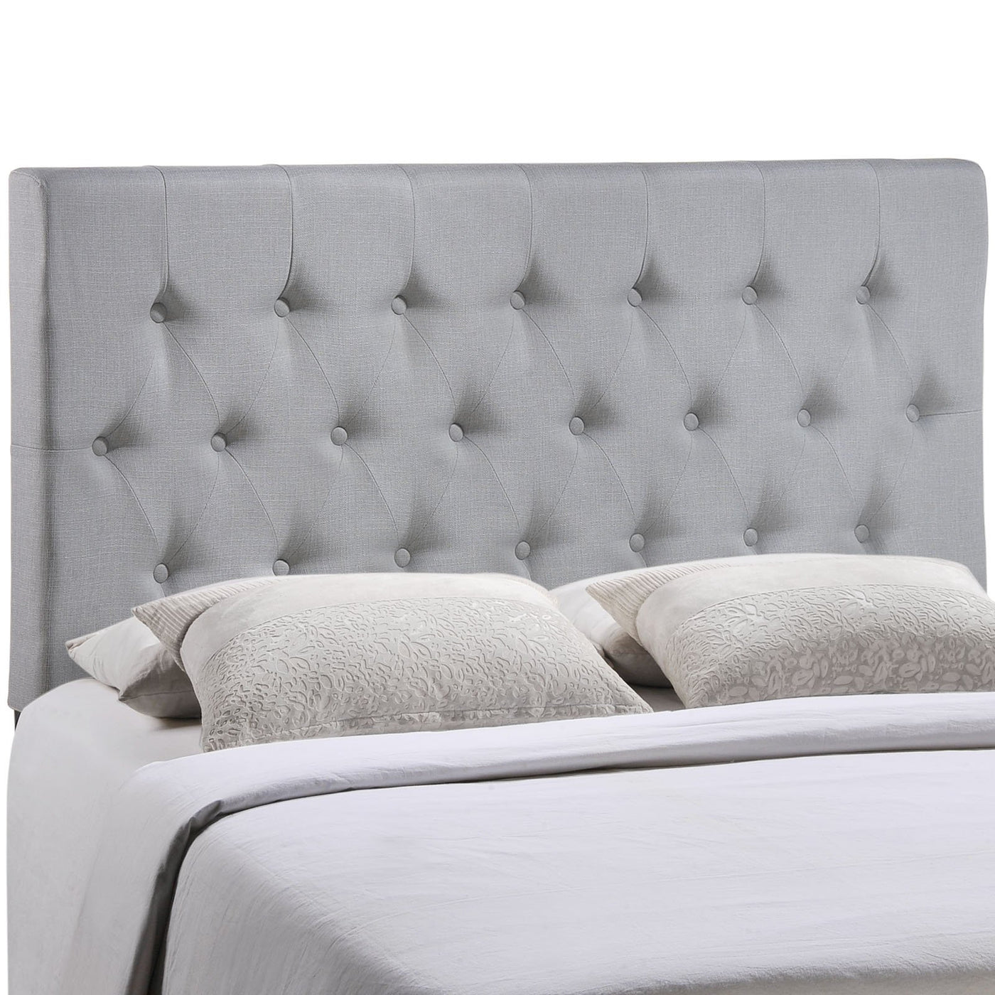 Deep tufted buttons patterned in a dazzling array adorn the Modway Clique Button Tufted Linen Fabric Upholstered Queen Headboard. Clique Queen Headboard adds depth and elegance to a décor built on an uncomplicated style of fine lines and carefully implemented design elements. Clique is made from fiberboard, solid wood, and soft linen fabric upholstery for a construction that is both lightweight and long-lasting. Introduce Clique headboard for queen beds to your contemporary bedroom for restful nights supported by a collaborative design.