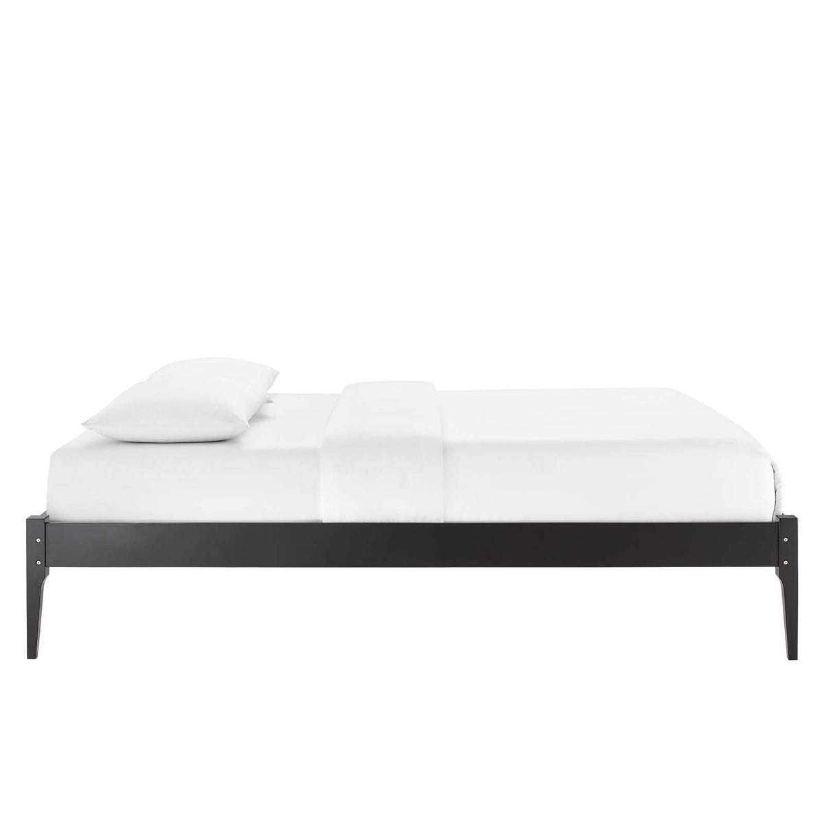 Refresh Your Bedroom With Modern Style And Updated Comfort With The June Queen Platform Bed. Inspired By Mid-Century Design, This Queen Size Bed Frame Boasts Retro Detail With Contemporary Accents And Organic Aesthetics To Bring Trending Modernity To Your Master Bedroom Or Guest Room. This Platform Bed Frame Is A Sturdy Addition To The Bedroom With A Durable Wood, Mdf, And Veneer Construction And Four Tapered Rubberwood Legs. Eliminating The Need For A Box Spring, This Queen Bed Is Complete With A Wood Slat Support System, Reinforced Center Beam, And Supporting Legs That Make It A Lasting Mattress Foundation For Memory Foam, Latex, Innerspring, And Hybrid Mattresses. Assembly Required. Queen Bed Frame Weight Capacity: 601 Lbs.