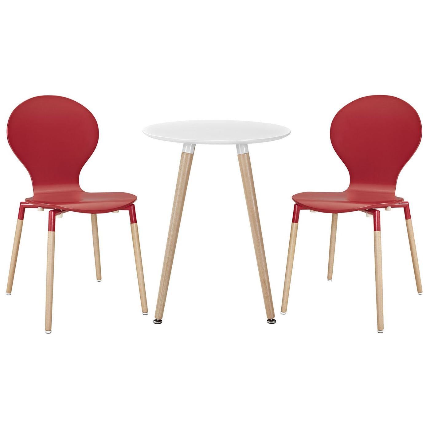 Modway Path Dining Chairs and Table, Red, Set of 3
