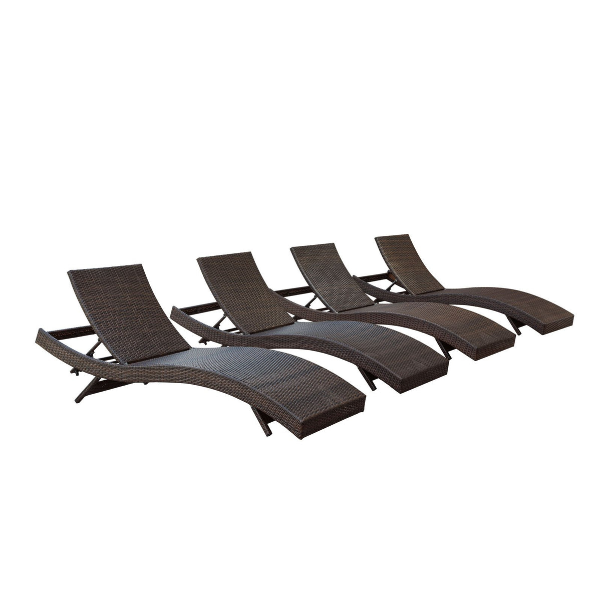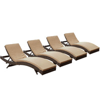 Modway Peer Wicker Rattan Outdoor Patio Four Chaise Lounge Chairs With Cushions In Brown Mocha