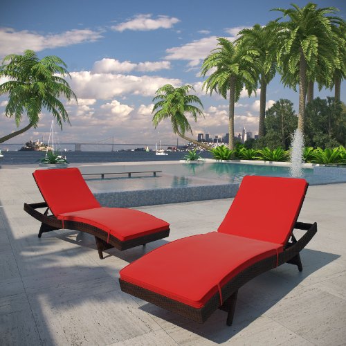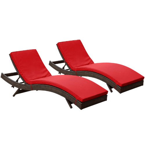 Modway Peer Wicker Rattan Outdoor Patio Two Chaise Lounge Chairs With Cushions In Brown Red