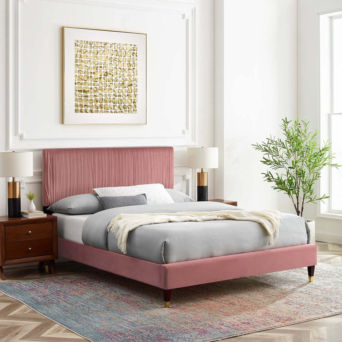 Modway Peyton Performance Velvet Full Platform Bed In Dusty Rose
