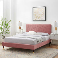 Offer Glam Deco Style And Vintage Modern Elegance To Your Master Bedroom Or Guest Bedroom Decor With The Phillipa Performance Velvet Queen Platform Bed. The Padded Headboard Of This Queen Size Bed Features A Beautiful Intersecting Diamond Design. Rich In Glam Deco Style And Vintage Modern Elegance, This Upholstered Bed Is Covered In Stain-Resistant Performance Velvet And Is A Sturdy Mattress Foundation For Memory Foam, Innerspring, Latex, And Hybrid Mattresses. Eliminating The Need For A Box Spring, The Mdf Frame Of This Queen Platform Bed Is Complete With A Wood Slat Support System Crafted With Poplar For Lasting Durability And Support. This Slatted Bed Frame Rests On Wood Legs With Gold Metal Sleeves And Non-Marking Foot Caps And Includes A Reinforced Center Beam With Two Support Legs For Enhanced Stability. Assembly Required. Queen Bed Weight Capacity: 800 Lbs.
