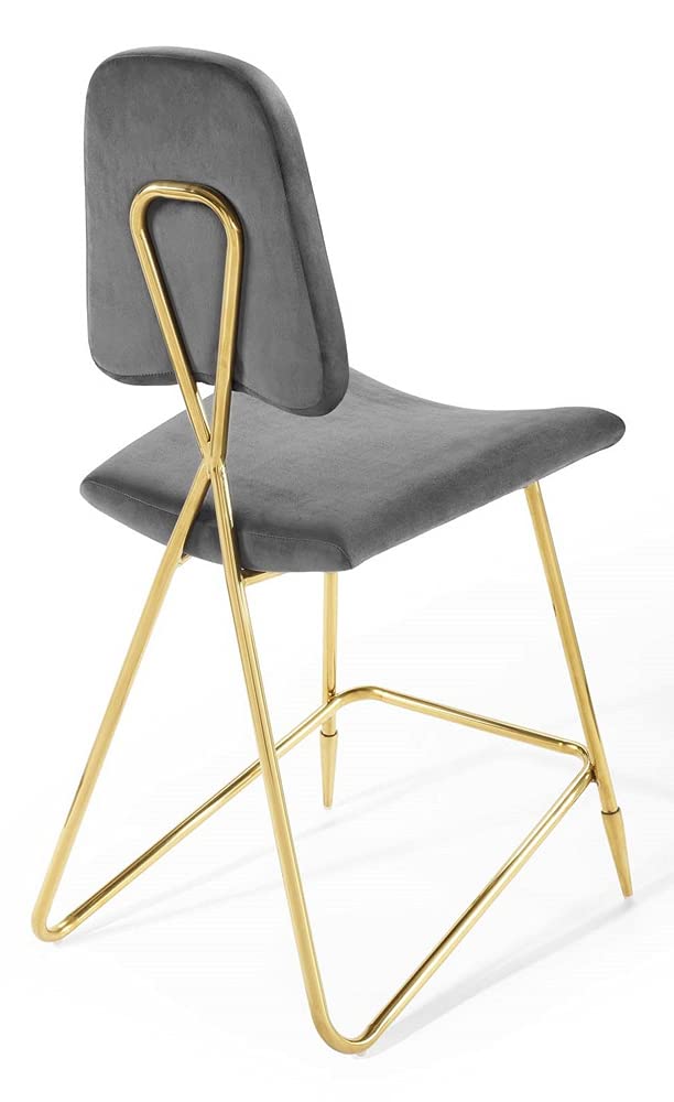 Survey Your Surroundings With Confidence With The Ponder Upholstered Performance Velvet Dining Room Counter Stool. Ponder’S Padded High-Density Foam Seat Gently Slopes Upward Providing Embracing Comfort While The Tapered Back Provides Ergonomic Support. Finely Upholstered In Stain-Resistant Performance Velvet Polyester, The Ponder Dining Stool Makes A Striking Statement With Its Gold Stainless Steel Base Featuring Two Angled Front Sleek Legs And A Rear Tripod Base. Accentuate Your Modern Decor With A Contemporary Dining Room Or Counter Stool That Elevates Any Empty Area Of Your Home. Counter Stool Weight Capacity: 330 Lbs.