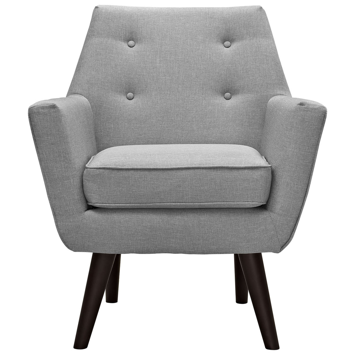Engage Your Sensibilities With The Organically Shaped Posit Armchair. Posit Is Gracefully Positioned On Solid Espresso Stained Dowel Legs Designed According To Mid-Century Design Practices. Whether Settling In With Coffee And Brunch, Or Entering A Spirited Discussion With Friends, Post'S Polyester Upholstery, Two Rows Of Finely Stitched Back Seat Buttons, And Organic Form Ensure An Eye-Catching Appeal At Every Turn. Bring Depth And Modernity To Your Contemporary Living Room Or Lounge Area With The Posit Armchair. Set Includes: 1 - Posit Armchair Product Dimensions: Overall Product Dimensions: 29"L X 30. 5"W X 22. 5 - 33. 5"H Seat Dimensions: 29"L X 18. 5 - 20. 5"W X 18. 5"H Armrest Height: 22. 5"H Backrest Dimensions: 3"W X 14. 5"H Armrest Dimensions: 20. 5"L X 3"W X 4"H Base Dimensions: 20. 5"L X 19. 5"W