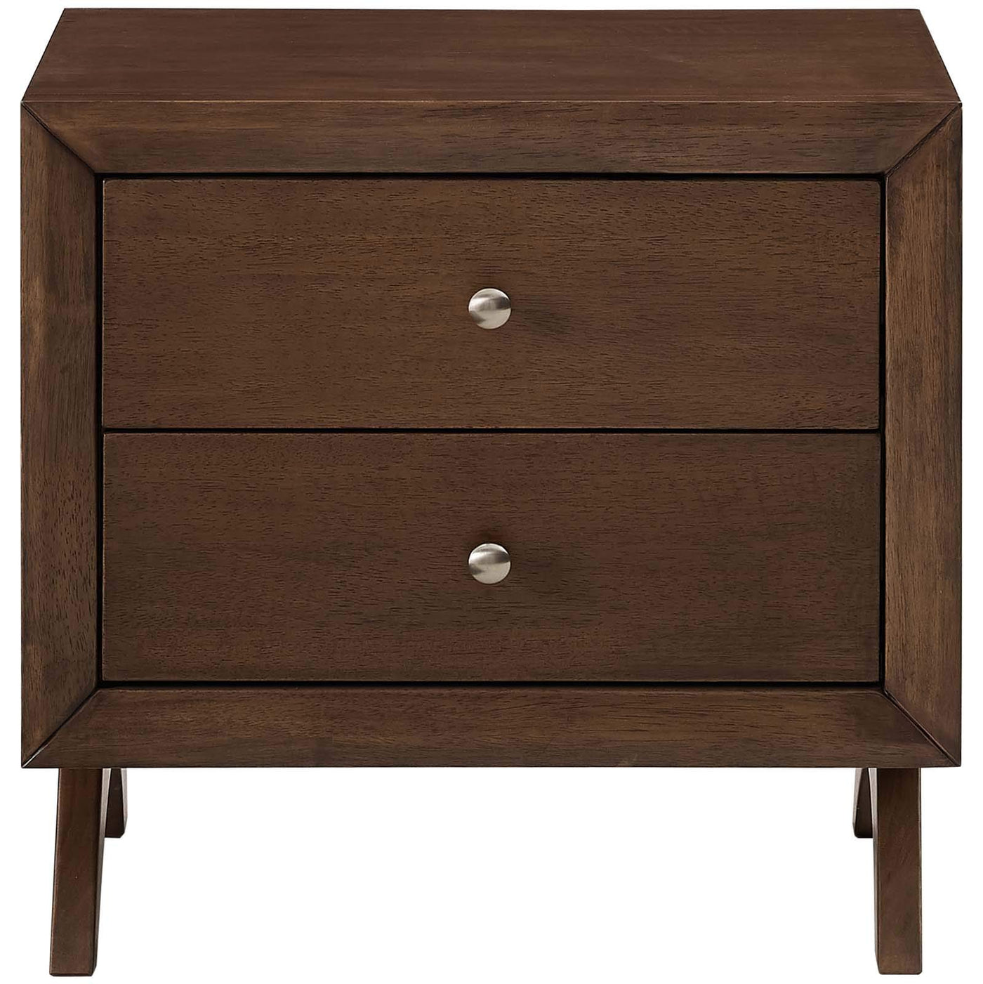 Introduce Retro Style And Contemporary Flair To A Guest Suite, Master Bedroom, Or Living Room With The Providence Nightstand Or End Table. Crafted With Solid Rubberwood And Durable Mdf, Providence Boasts Linear Detail, Elegantly Tapered Legs With Non-Marking Foot Caps, Polished Silver Metal Knobs, And A Rich Wood Grain Veneer That Embodies Classic Mid-Century Design. The Two Full-Extension Glide Drawers Grant Spacious, Concealed Storage. Display And Store Your Books, Pictures, And Bedtime Essentials With This Contemporary Modern Nightstand Or End Table.