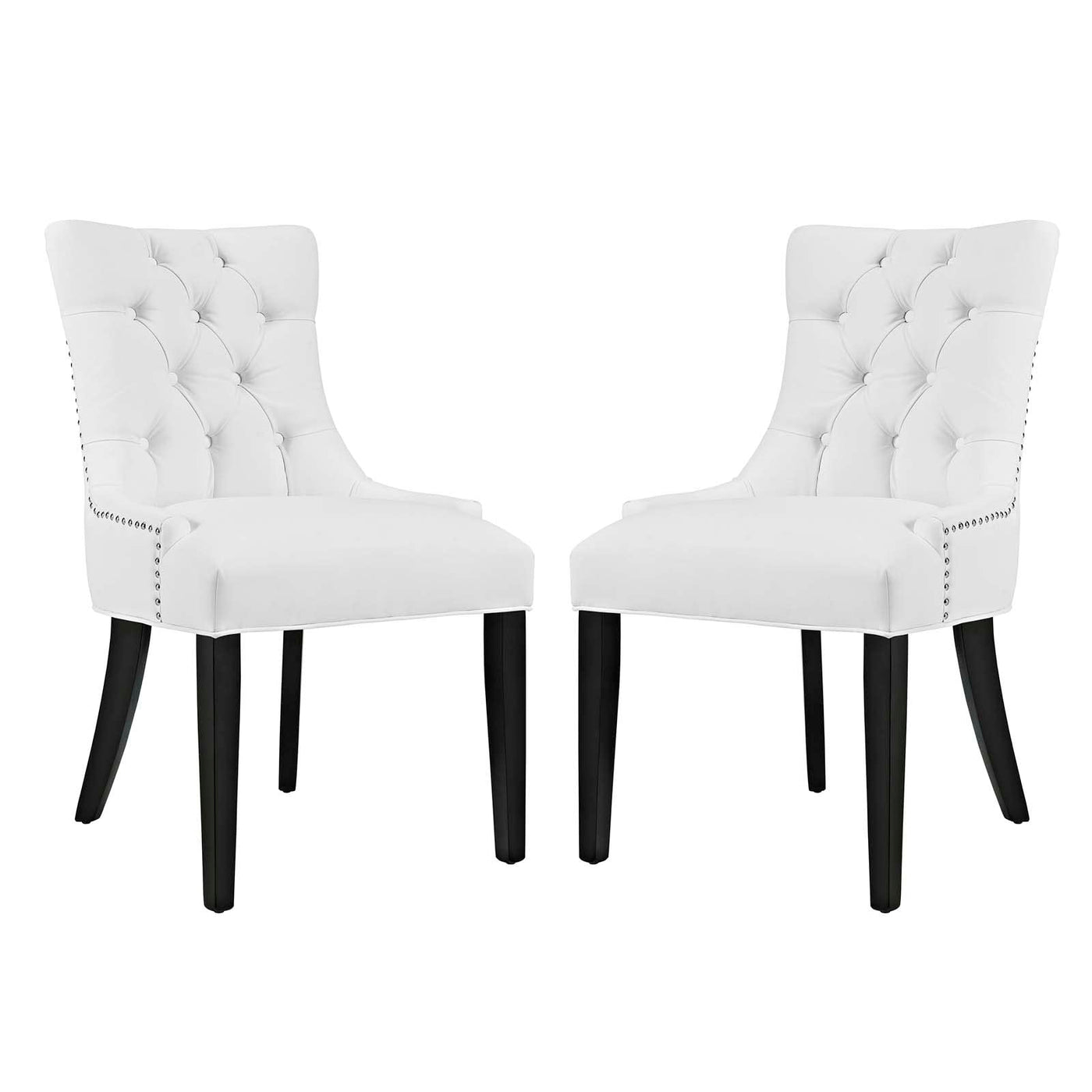 Modway Regent Modern Tufted Faux Leather Upholstered Two Dining Chairs with Nailhead Trim in White