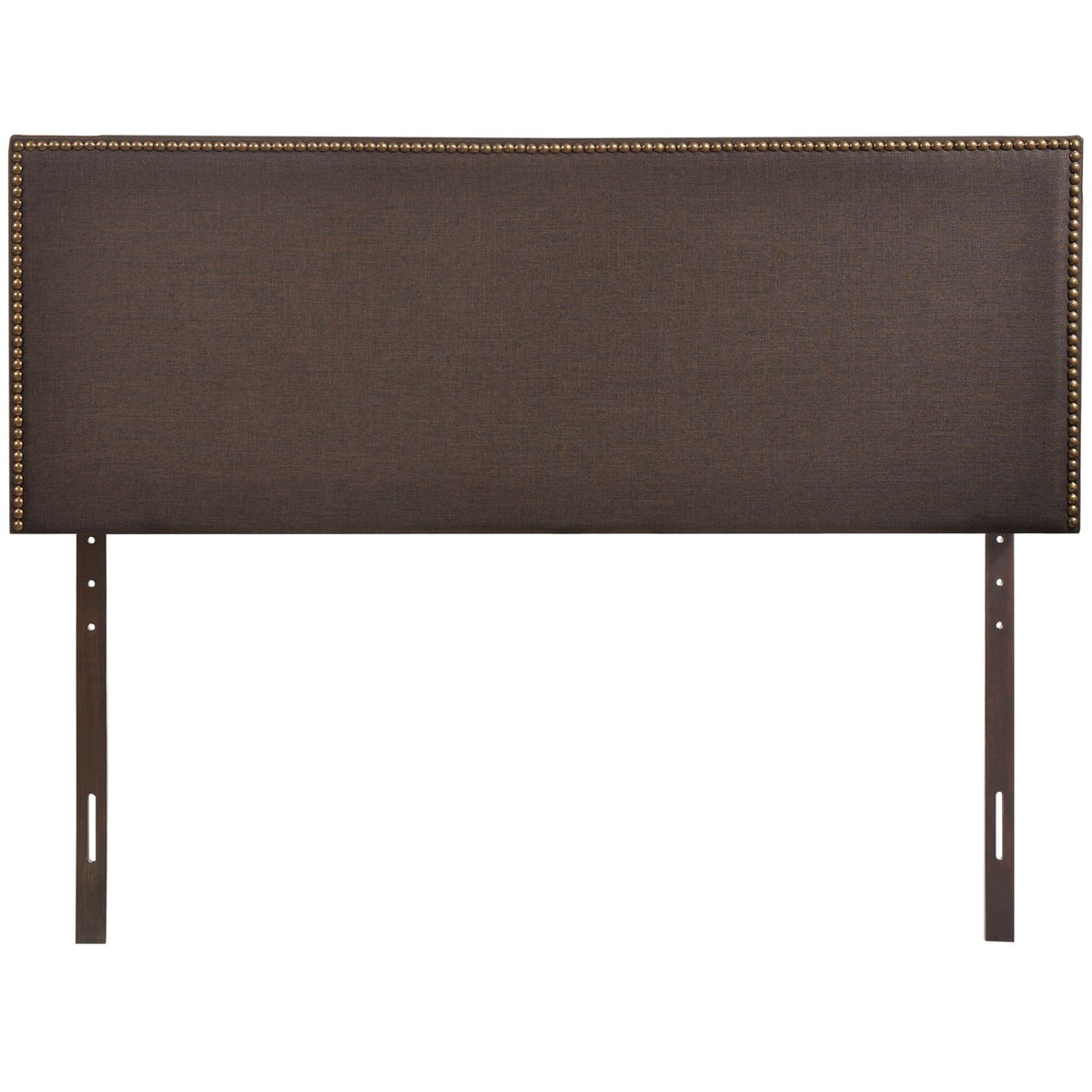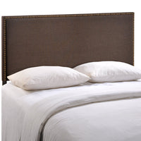 Modway Region Linen Fabric Upholstered Queen Headboard in Dark Brown with Nailhead Trim