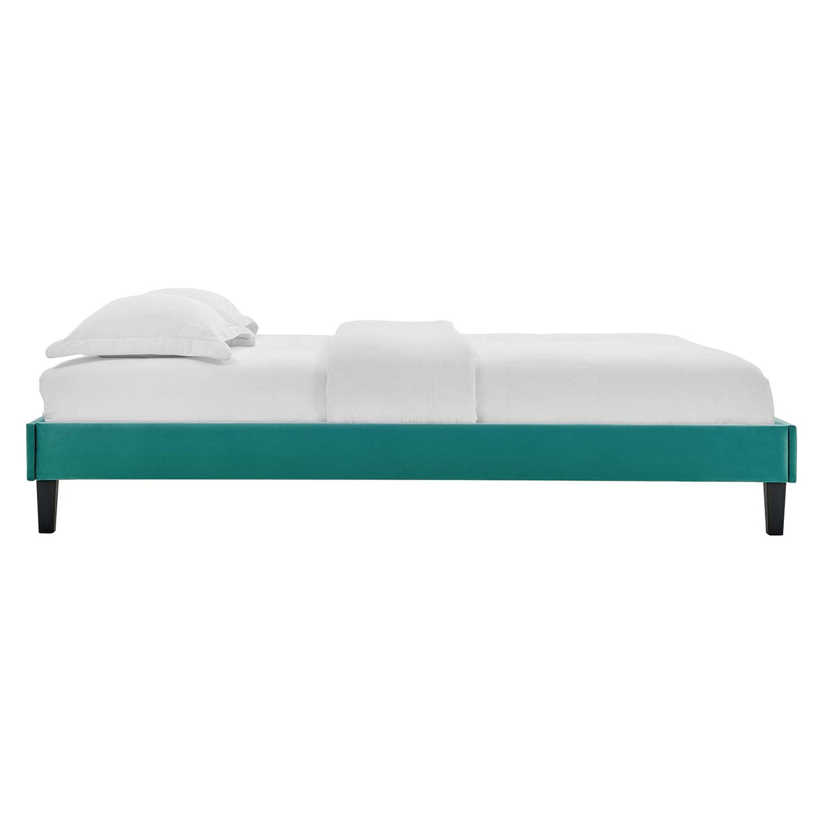 Transform Your Bedroom Decor With The Subtle Glam Deco Style Of The Reign Performance Velvet King Platform Bed Frame. Covered In Soft, Stain-Resistant Performance Velvet, This Upholstered Bed Boasts Rich Texture On The Simple Design Of The Sturdy Side Rails. Resting Atop Tapered Black Wood Legs, The King Size Bed Frame Is A Sturdy Mattress Foundation For Memory Foam, Latex, Innerspring, And Hybrid Mattresses. Eliminating The Need For A Box Spring, This Platform Bed Is Complete With A Poplar Wood Slat Support System, A Reinforced Center Beam, And Supporting Legs For Lasting Stability. Compatible With A Variety Of King Headboard Designs, This King Platform Bed Also Makes A Striking Statement As A Stand-Alone Piece In The Master Bedroom Or Guest Bedroom. Mattress Not Included. Assembly Required. King Bed Frame Weight Capacity: 800 Lbs.