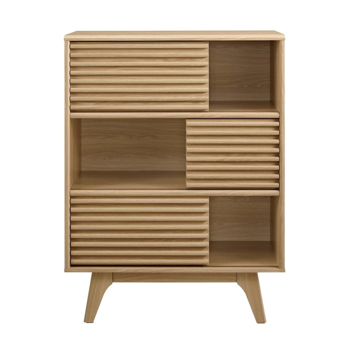 Modway Render Mid-Century Modern Three-Tier Display Storage Cabinet Stand in Oak