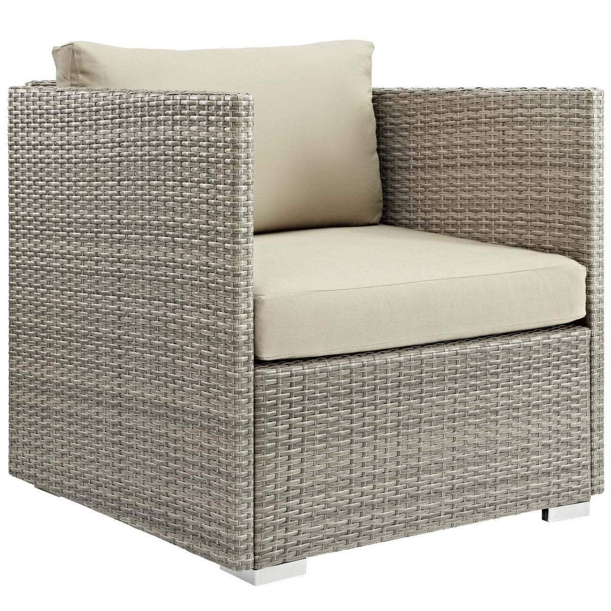 Modway Repose Wicker Rattan Outdoor Patio Arm Chair With Cushions In Light Gray Beige