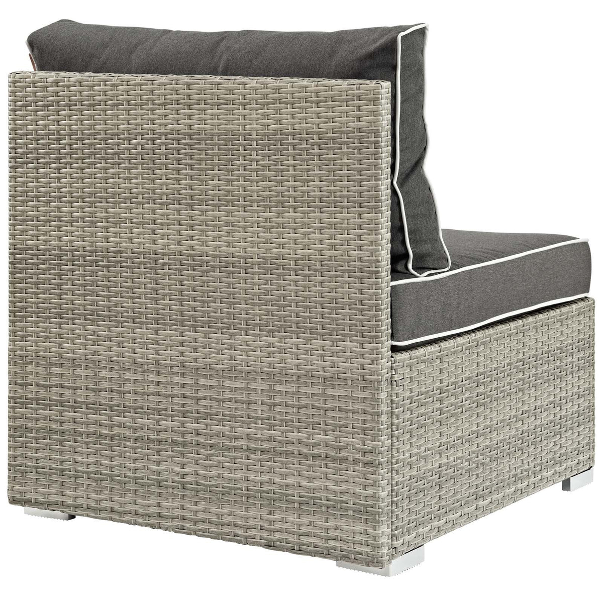 Modway Repose Wicker Rattan Outdoor Patio Armless Sectional Sofa Chair With Cushions In Light Gray Charcoal
