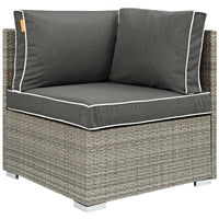 Modway Repose Wicker Rattan Outdoor Patio Corner Sectional Sofa Chair With Cushions In Light Gray Charcoal