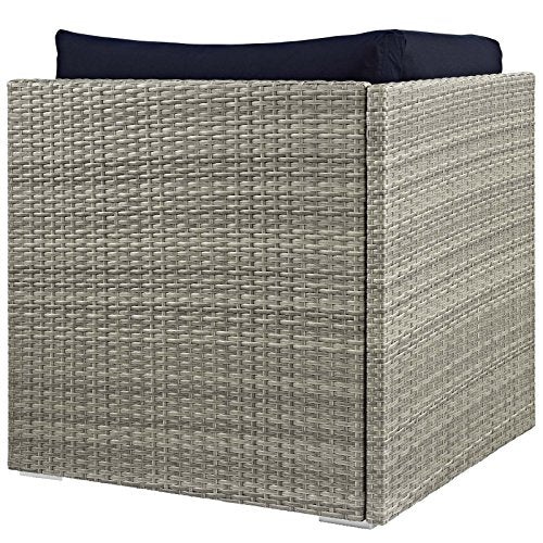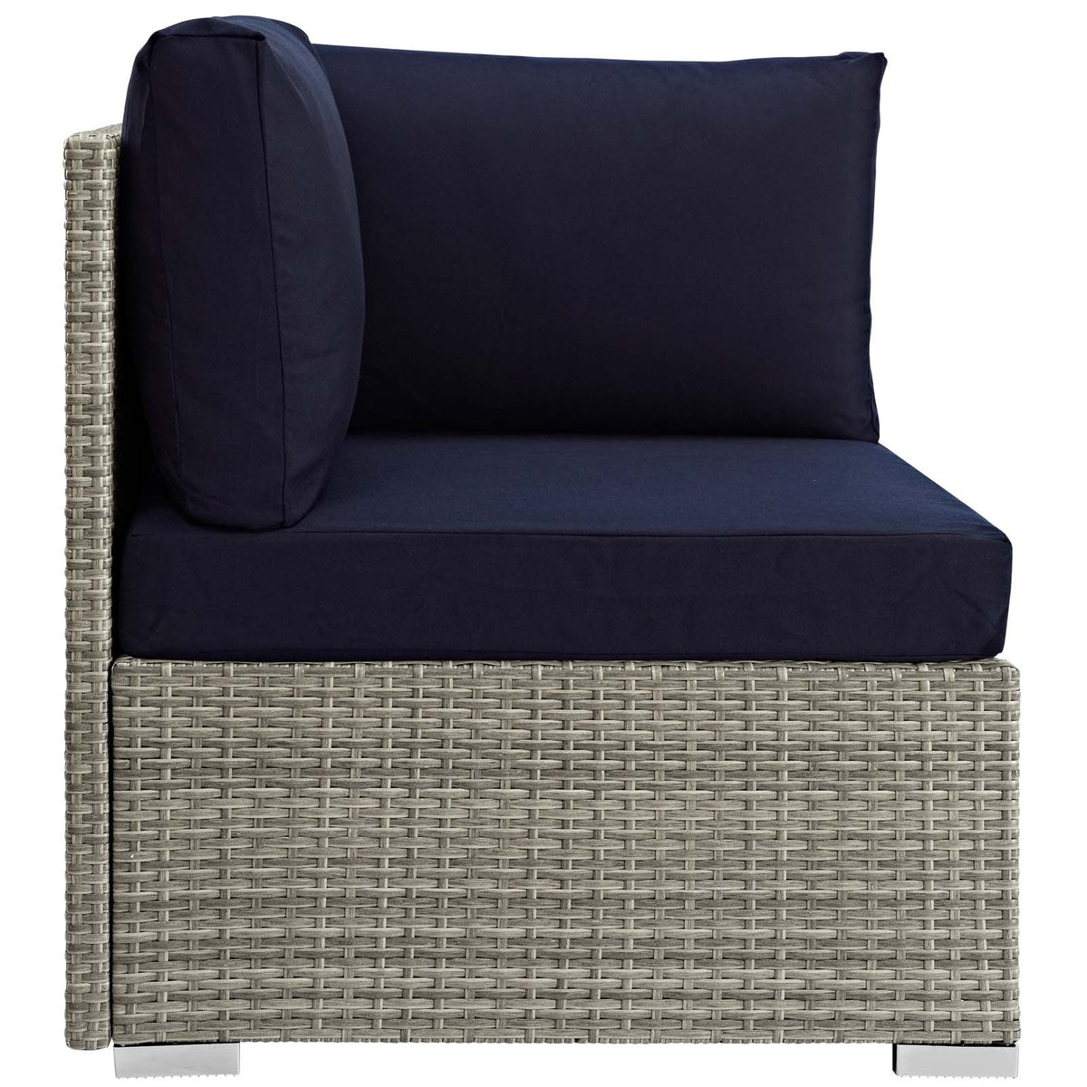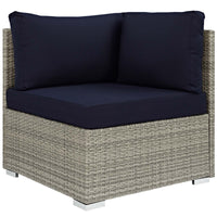 Modway Repose Wicker Rattan Outdoor Patio Corner Sectional Sofa Chair With Cushions In Light Gray Navy