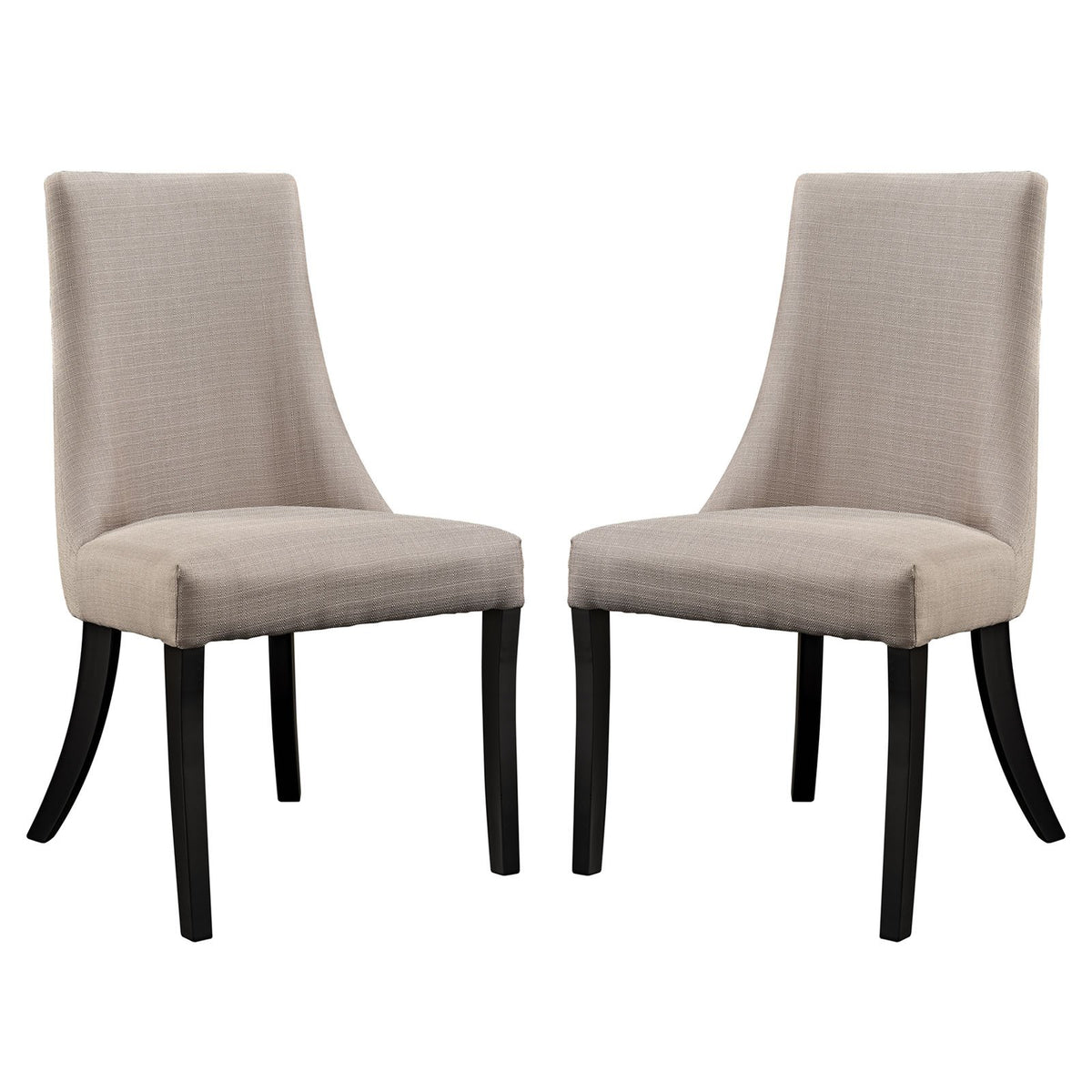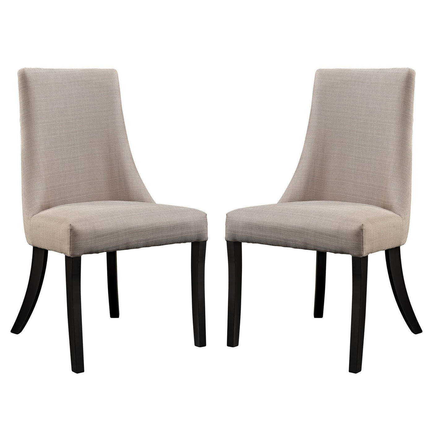 Modway Reverie Modern Upholstered Fabric Parsons Two Kitchen and Dining Room Chairs in Beige