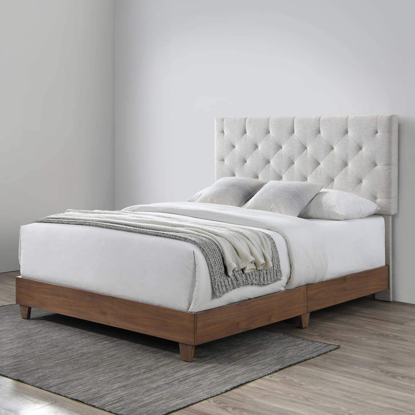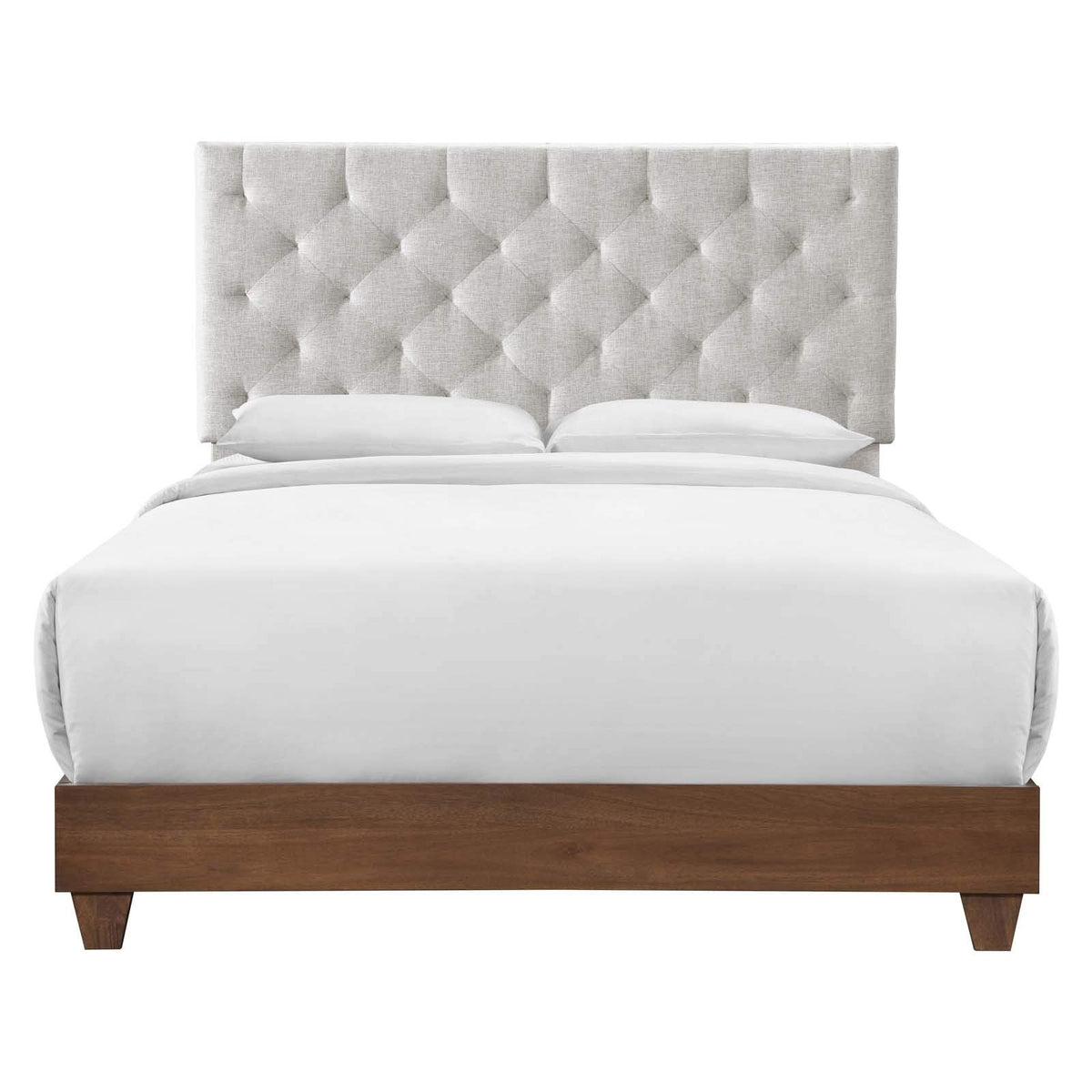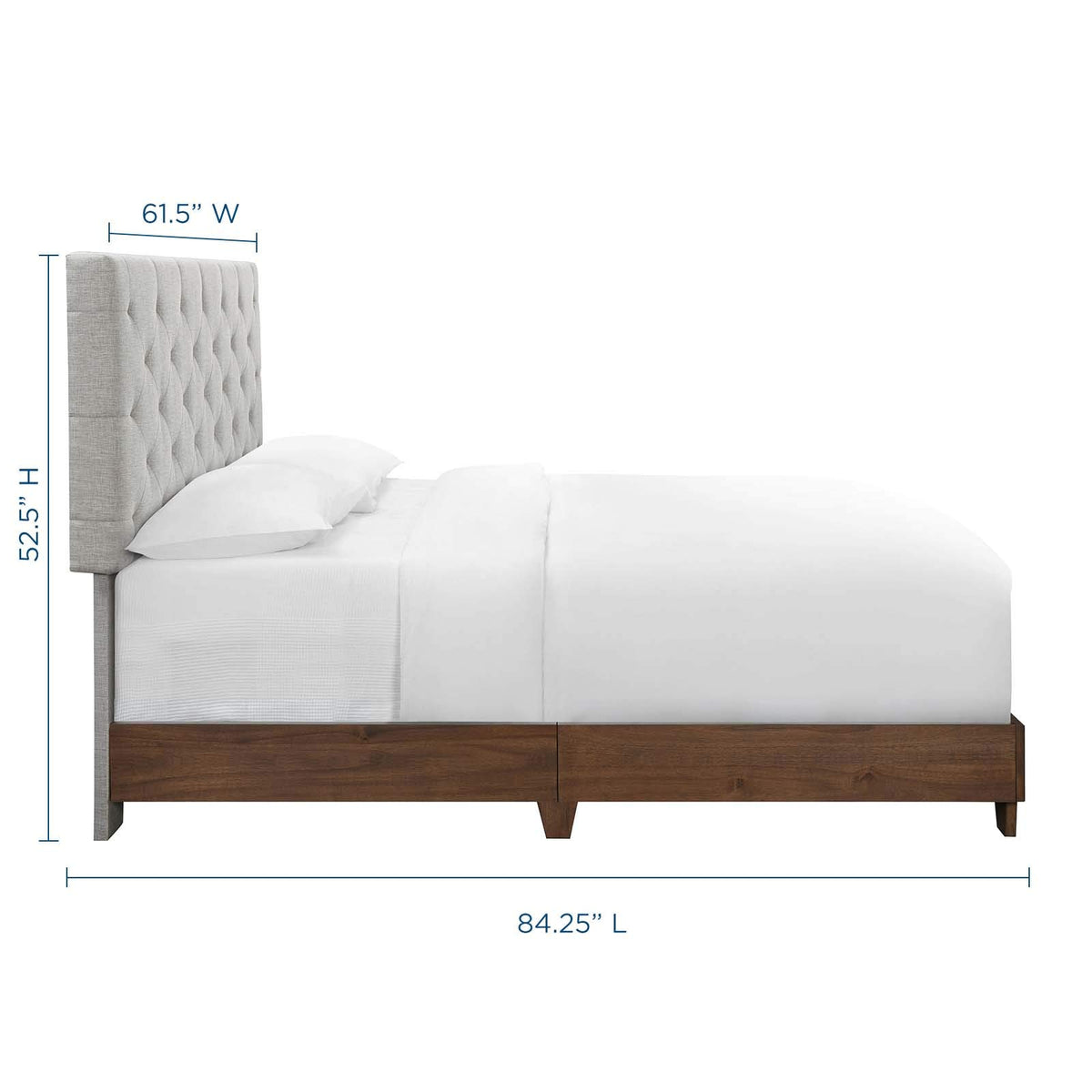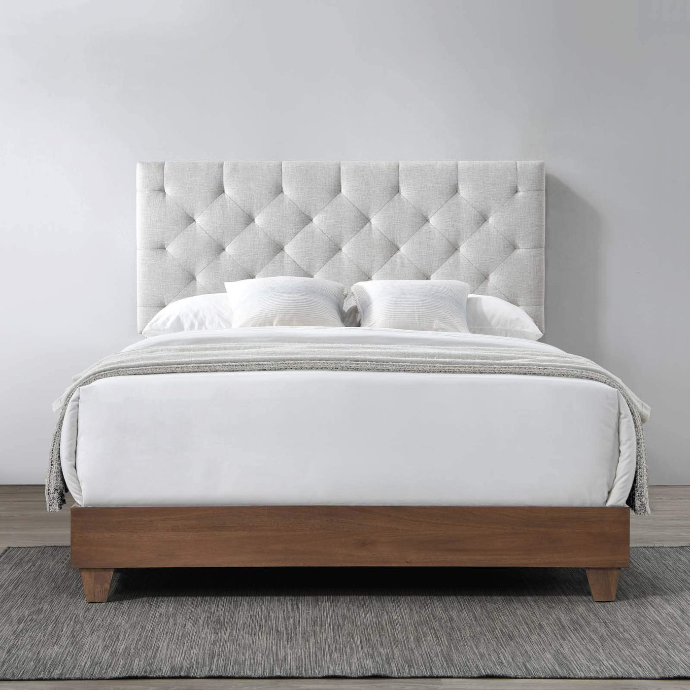 Manifest The Extraordinary In Your Bedroom Decor With The Rhiannon Tufted Upholstered Fabric Queen Bed. Solidly Constructed From Mdf And Wood, Rhiannon Queen Bed Has Tapered Legs And A Walnut Veneer. Rhiannon’S Sturdy Frame Comes With Dual Support Planks, Soft And Durable Polyester Fabric Upholstery, And A Padded Tufted Diamond Pattern Headboard, For Enhanced Comfort And Stability. Claim The Elegance Of Rhiannon Queen Bed For Your Master Suite Or Guest Room. This Queen Panel Bed Has A Fixed Position Headboard, Requires Assembly And Box Spring. Headboard Included. Spot Clean As Needed. Bed Weight Capacity: 800 Lbs.