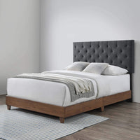 Manifest The Extraordinary In Your Bedroom Decor With The Rhiannon Tufted Upholstered Fabric Queen Bed. Solidly Constructed From Mdf And Wood, Rhiannon Queen Bed Has Tapered Legs And A Walnut Veneer. Rhiannon’S Sturdy Frame Comes With Dual Support Planks, Soft And Durable Polyester Fabric Upholstery, And A Padded Tufted Diamond Pattern Headboard, For Enhanced Comfort And Stability. Claim The Elegance Of Rhiannon Queen Bed For Your Master Suite Or Guest Room. This Queen Panel Bed Has A Fixed Position Headboard, Requires Assembly And Box Spring. Headboard Included. Spot Clean As Needed. Bed Weight Capacity: 800 Lbs.