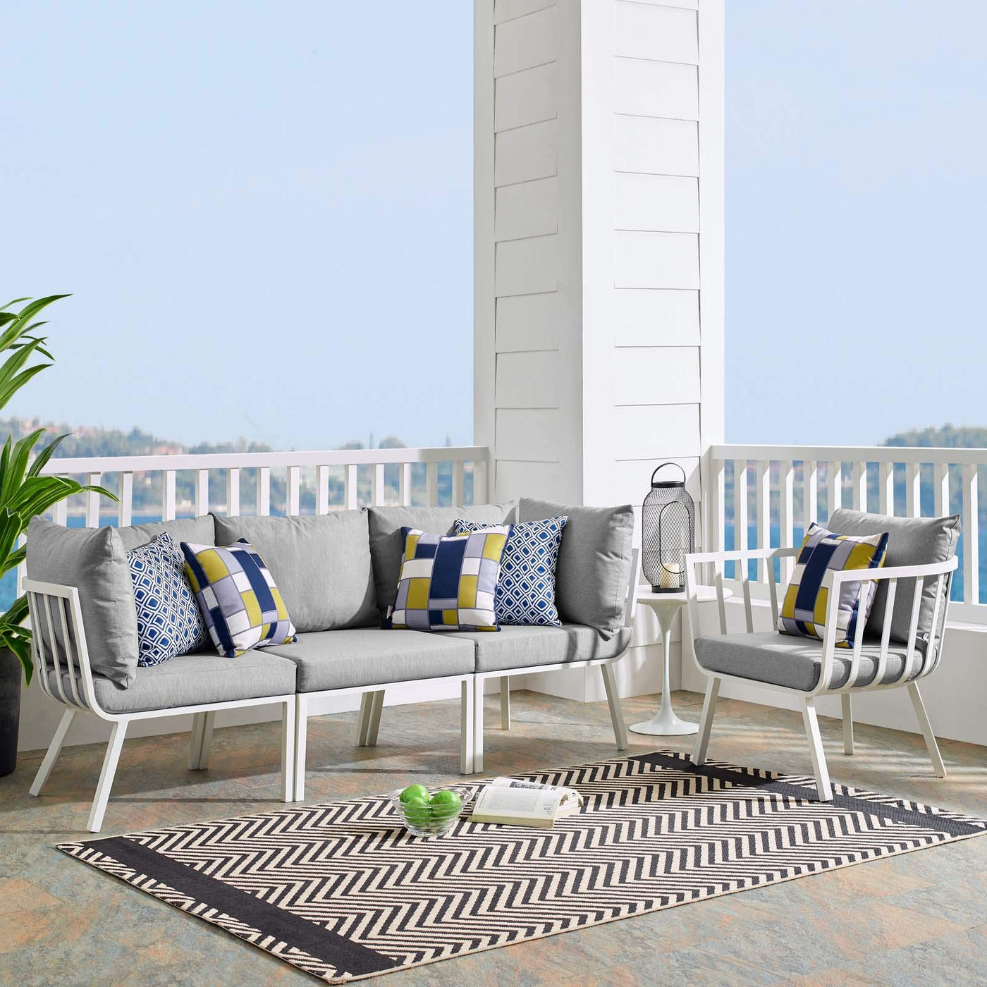 Modway Riverside 4 Piece Outdoor Patio Aluminum Set, 114 X 61.5 X 28, White Gray