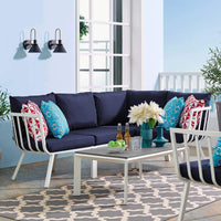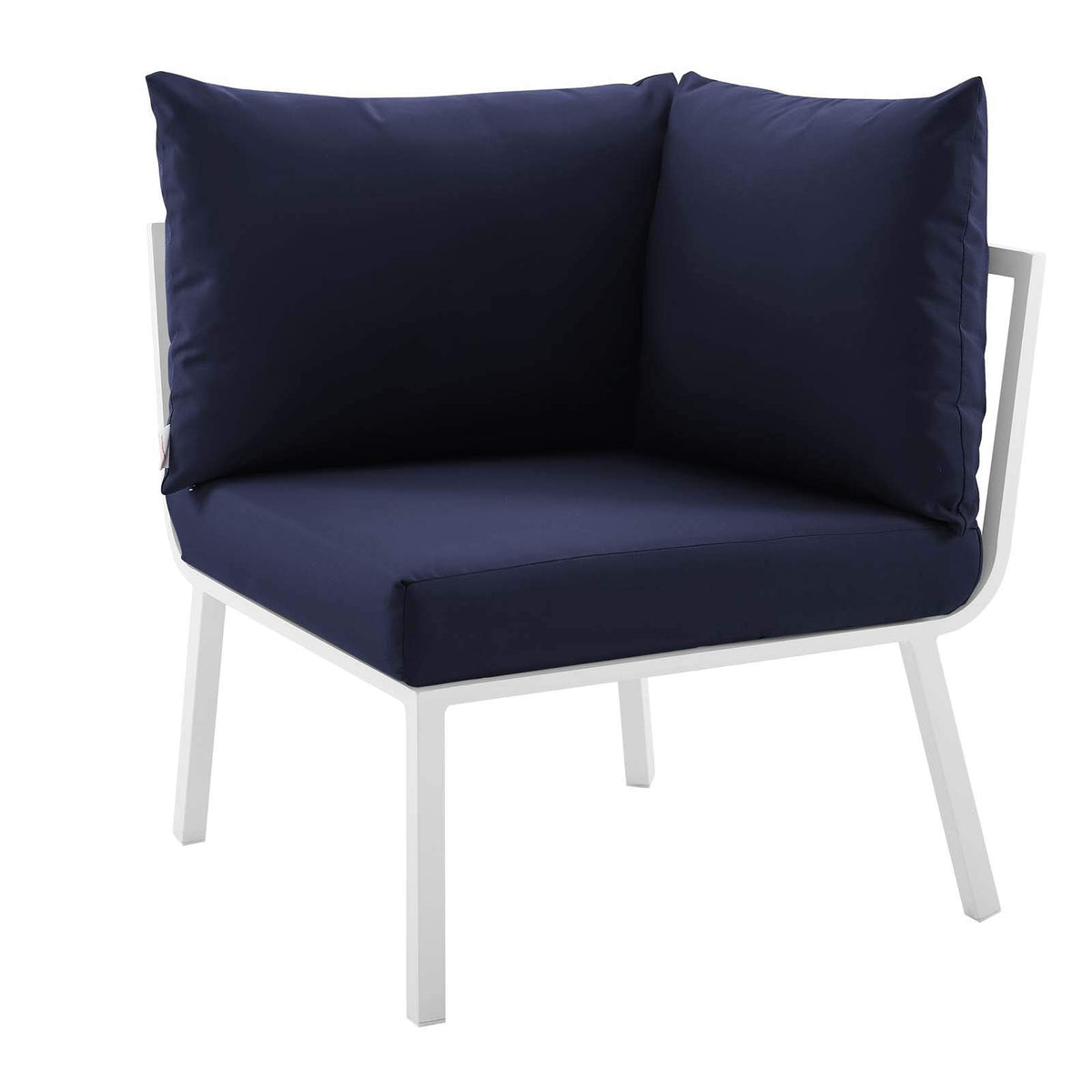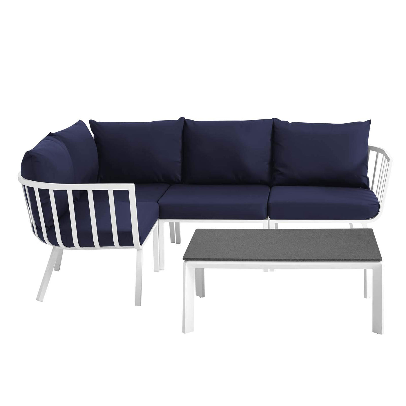 Refresh Your Outdoor Decor With The Riverside Outdoor Patio Aluminum Sectional With Riverside Aluminum Coffee Table. Defined By A Crisp, Coastal Style, This Installment Of The Riverside Outdoor Sectional Sofa Furniture Collection Features An Open Slatted Back Design, Angled Back Legs, And Plush 4" Thick All-Weather Uv-Resistant Fabric Cushions. Solidly Constructed With A Powder-Coated Aluminum Frame, The Riverside Sectional Will Enhance The Look Of Your Patio, Backyard, Balcony, Porch, Deck, Or Poolside Area. Table Constructed With A White Powder-Coated Aluminum Frame And Smooth Scratch-Resistant Cement Top, Durable, All-Weather Outdoor Coffee Table Perfect For Any Outdoor Get Together. Includes Foot Caps. Seat Weight Capacity: 300 Lbs Set Includes: One - Riverside Aluminum Coffee Table One - Riverside Armless Chair Three - Riverside Corner Chair Product Dimensions: Overall Product Dimensions: 59"L X 85. 5"W X 28"H Table Dimensions: 23"L X 39"W X 15. 5"H Overall Corner Chair Dimensions: 29. 5"L X 29. 5"W X 28"H Overall Armless Chair Dimensions: 29. 5"L X 26. 5"W X 28"H Seat Dimensions: 26. 5"L X 26. 5"W X 17"H Backrest Height: 11"H Armrest Height From Seat: 11"H Cushion Thickness: 4"H