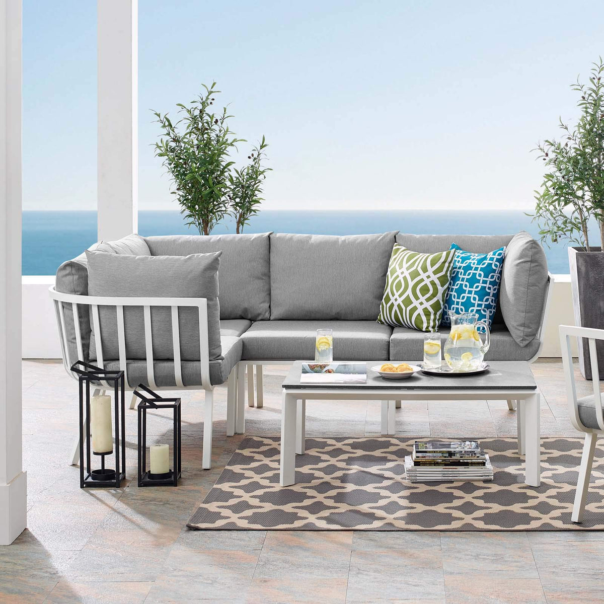 Modway Riverside 5 Piece Outdoor Patio Aluminum Set, White Gray