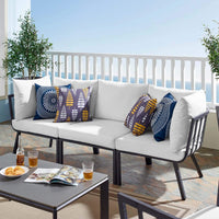 Refresh Your Outdoor Decor With The Riverside Outdoor Patio Aluminum Sofa. Defined By A Crisp, Coastal Style, This Installment Of The Riverside Outdoor Sectional Sofa Furniture Collection Features An Open Slatted Back Design, Angled Back Legs, And Plush 4" Thick All-Weather Uv-Resistant Fabric Cushions. Solidly Constructed With A Powder-Coated Aluminum Frame, The Riverside Outdoor Sofa Will Enhance The Look Of Your Patio, Backyard, Balcony, Porch, Deck, Or Poolside Area. Includes Foot Caps. Seat Weight Capacity: 300 Lbs Set Includes: One - Riverside Armless Chair Two - Riverside Corner Chair Product Dimensions: Overall Product Dimensions: 29. 5"L X 85. 5"W X 28"H Individual Corner Chair Dimensions: 29. 5"L X 29. 5"W X 28"H Individual Armless Chair Dimensions: 29. 5"L X 26. 5"W X 28"H Seat Dimensions: 26. 5"L X 26. 5"W X 17"H Backrest Height: 11"H Armrest Height: 11"H Cushion Thickness: 4"H