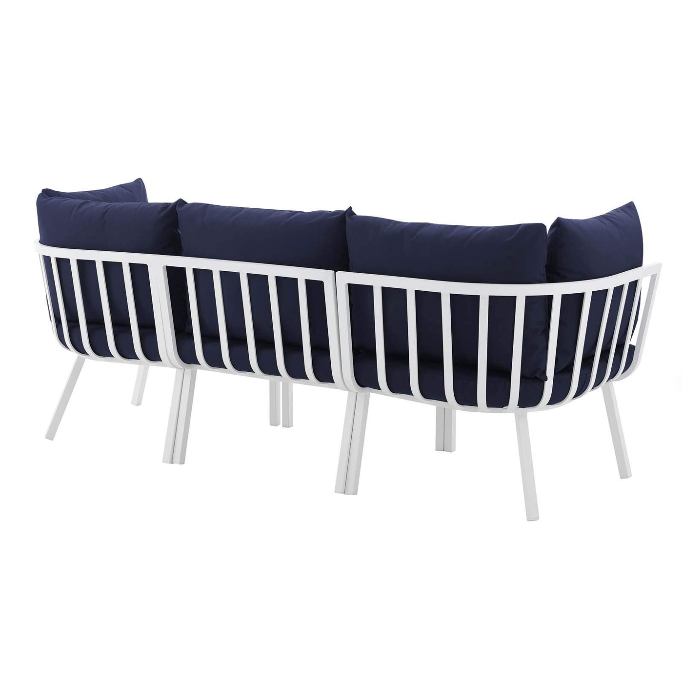 Refresh Your Outdoor Decor With The Riverside Outdoor Patio Aluminum Sofa. Defined By A Crisp, Coastal Style, This Installment Of The Riverside Outdoor Sectional Sofa Furniture Collection Features An Open Slatted Back Design, Angled Back Legs, And Plush 4" Thick All-Weather Uv-Resistant Fabric Cushions. Solidly Constructed With A Powder-Coated Aluminum Frame, The Riverside Outdoor Sofa Will Enhance The Look Of Your Patio, Backyard, Balcony, Porch, Deck, Or Poolside Area. Includes Foot Caps. Seat Weight Capacity: 300 Lbs Set Includes: One - Riverside Armless Chair Two - Riverside Corner Chair Product Dimensions: Overall Product Dimensions: 29. 5"L X 85. 5"W X 28"H Individual Corner Chair Dimensions: 29. 5"L X 29. 5"W X 28"H Individual Armless Chair Dimensions: 29. 5"L X 26. 5"W X 28"H Seat Dimensions: 26. 5"L X 26. 5"W X 17"H Backrest Height: 11"H Armrest Height: 11"H Cushion Thickness: 4"H
