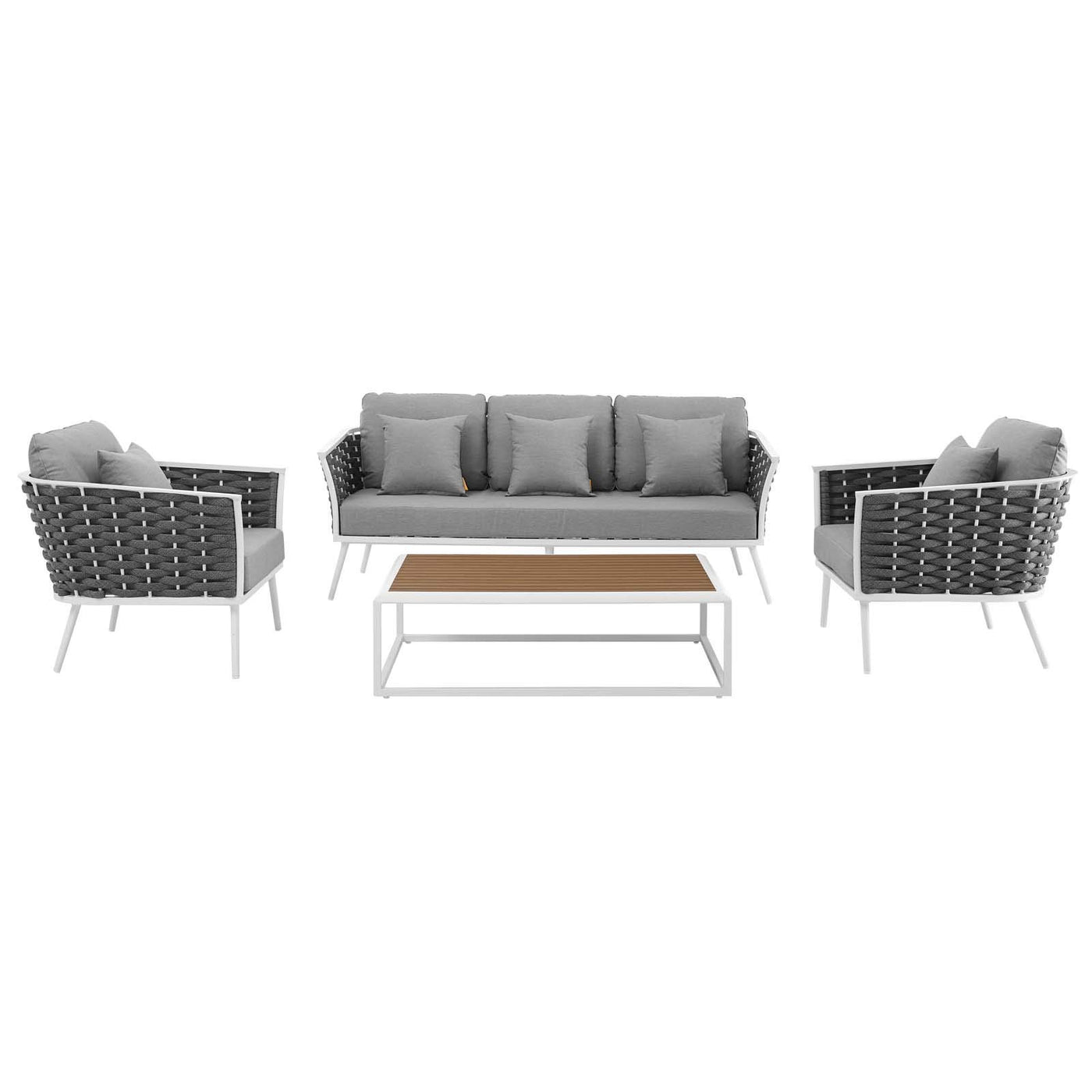 Modway Stance Outdoor Patio Aluminum, Sofa, Coffee Table, And Two Armchairs, White Gray