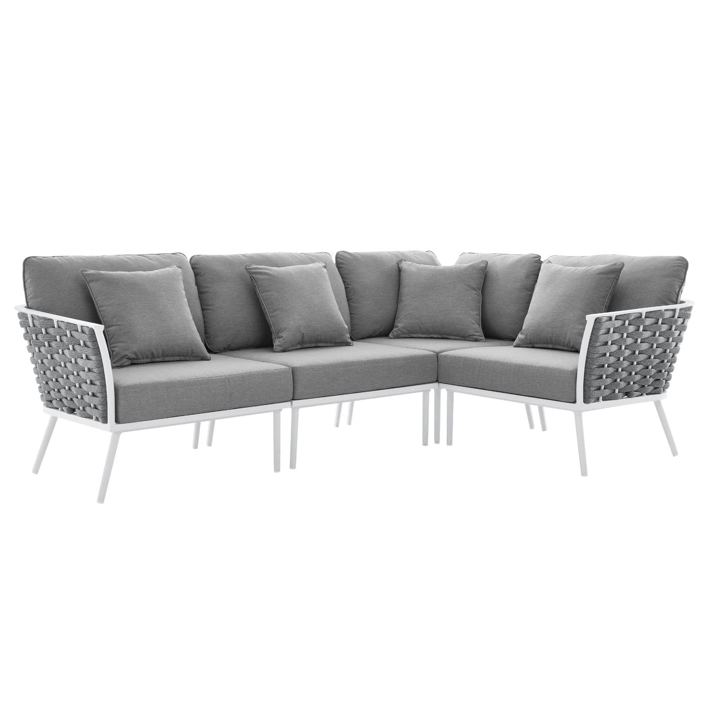 Modway Stance Outdoor Patio Woven Rope Aluminum Large Sectional Sofa in White Gray