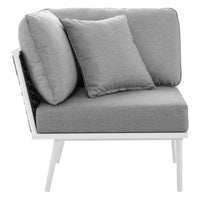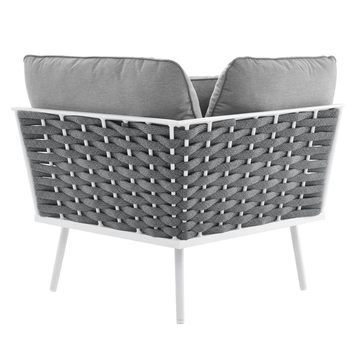 Modway Stance Outdoor Patio Woven Rope Aluminum Sectional Sofa Corner Chair in White Gray