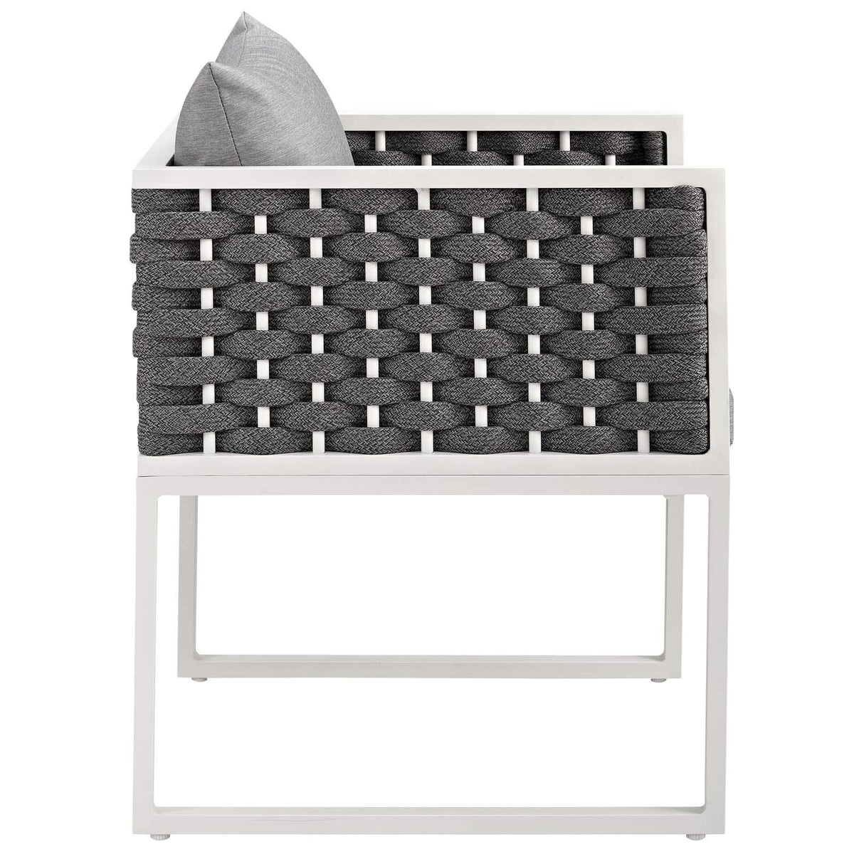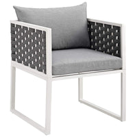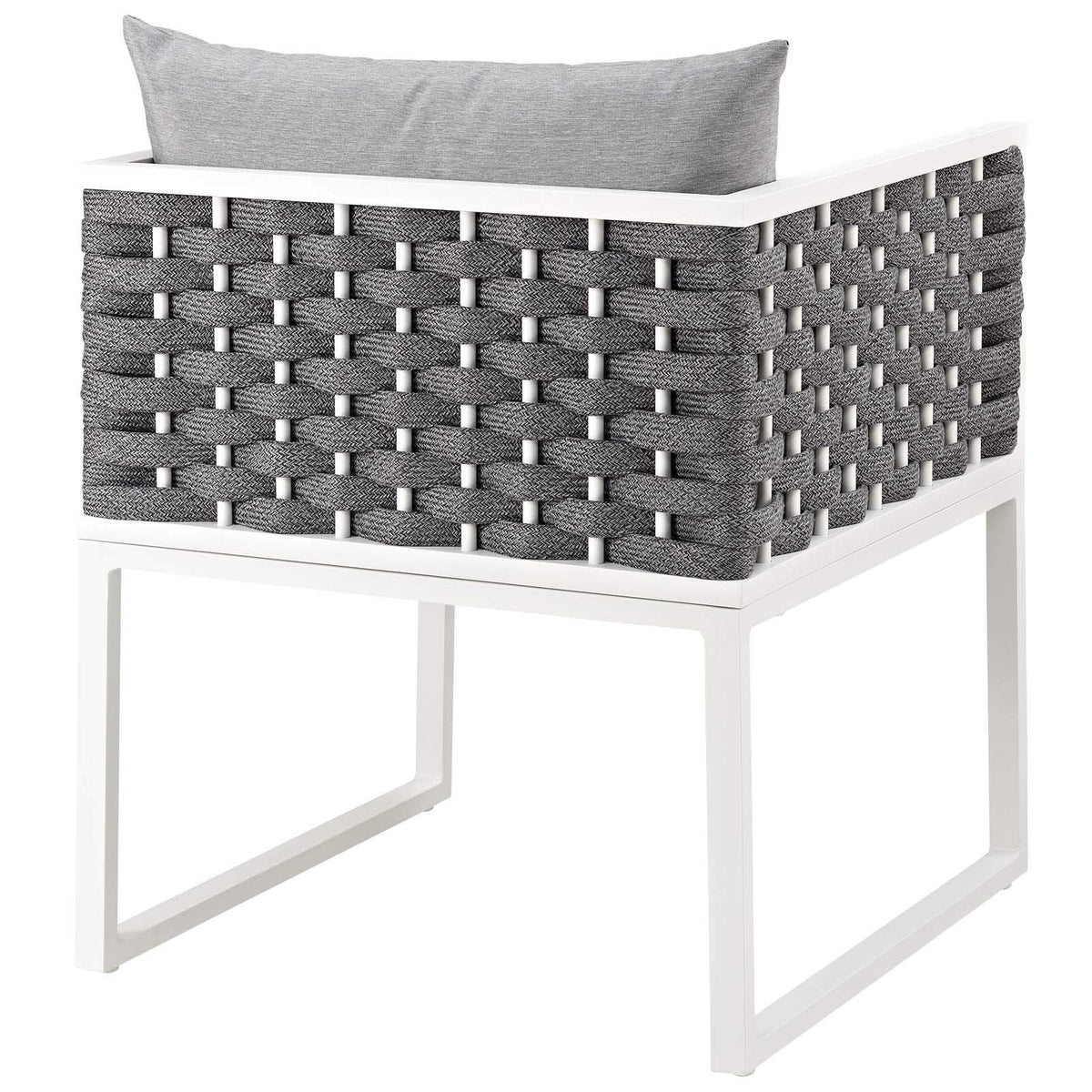 Modway Stance Outdoor Patio Woven Rope Dining Arm Chair in White Gray