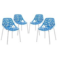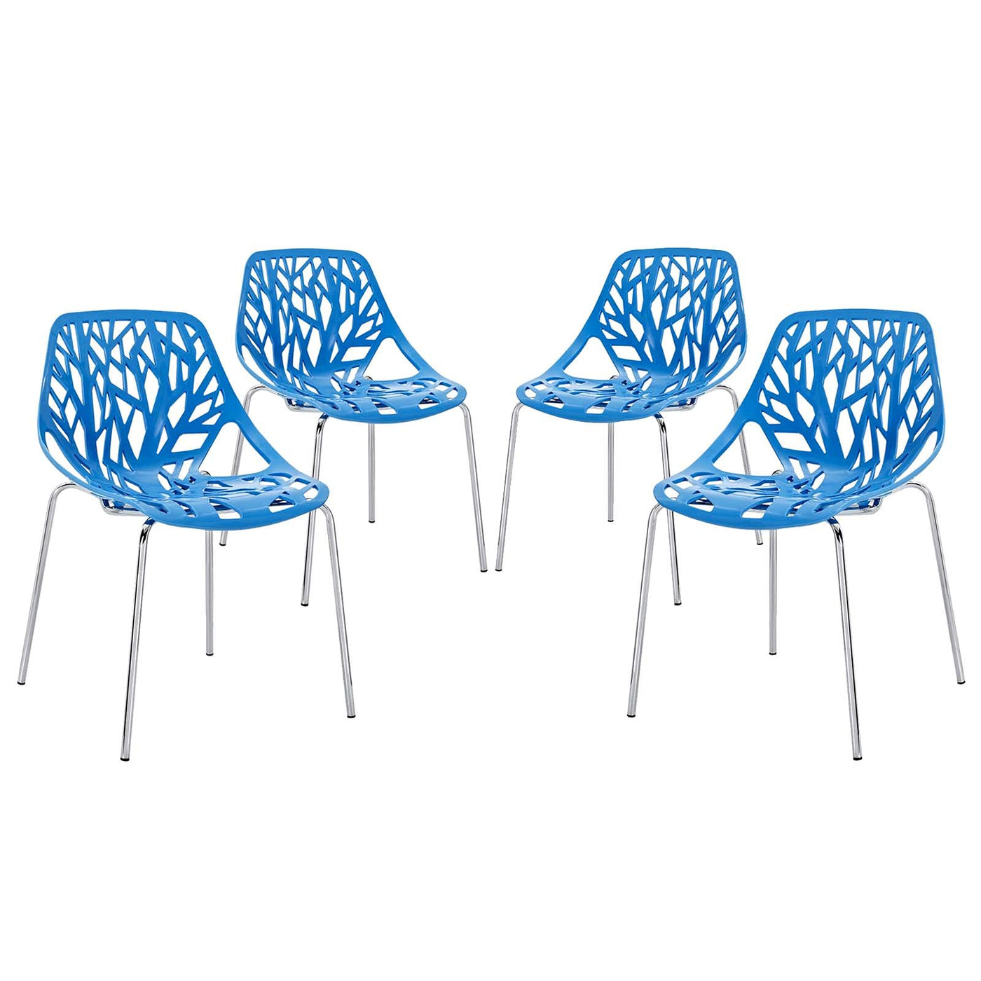 Modway Stencil Modern Stacking Four Kitchen and Dining Room Chairs in Blue
