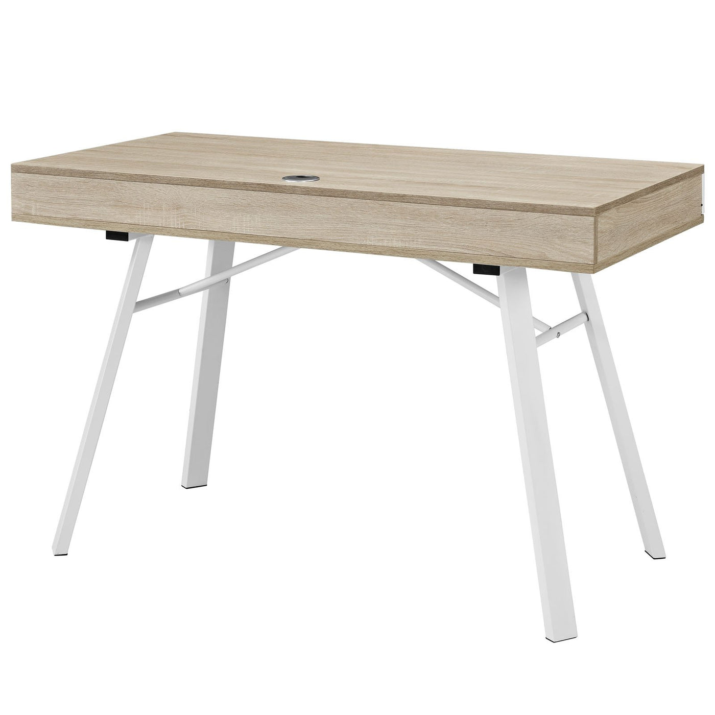 Modway Stir Wood Grain and Metal Writing Office Desk With Storage Space In Oak