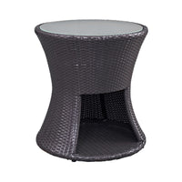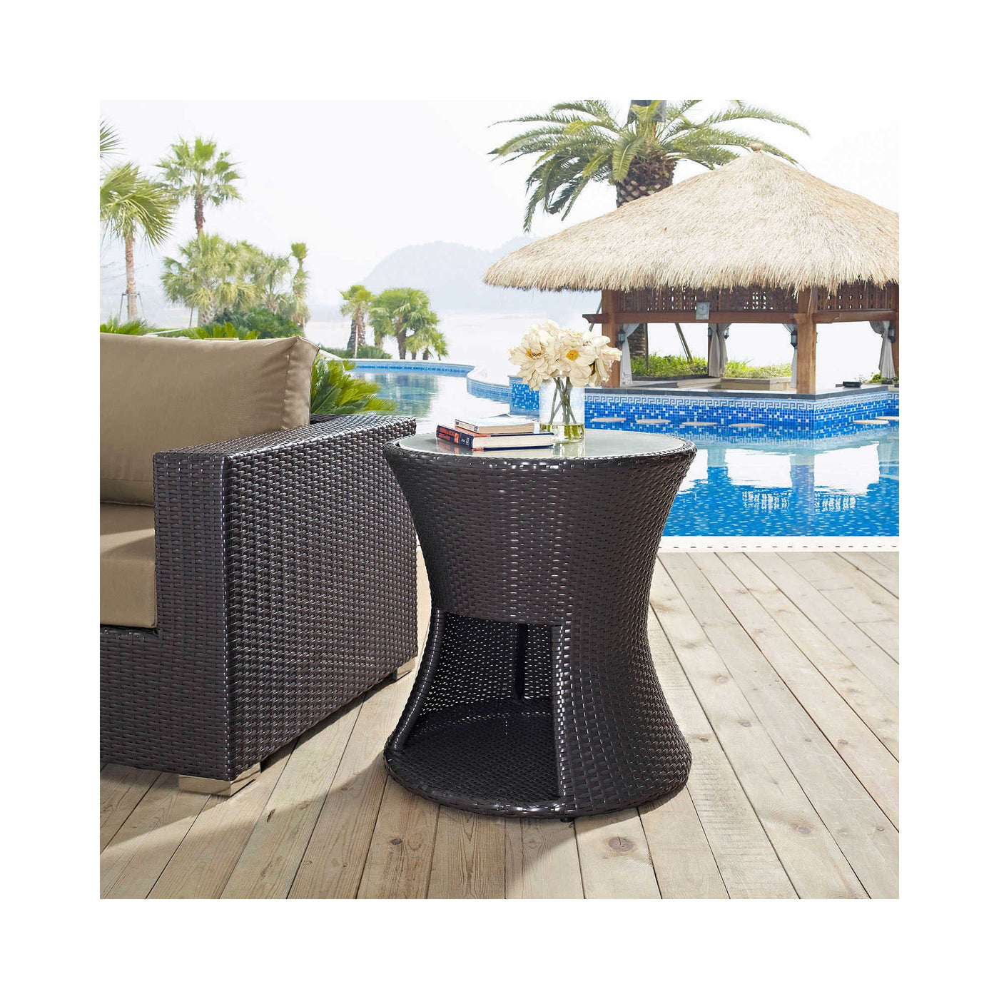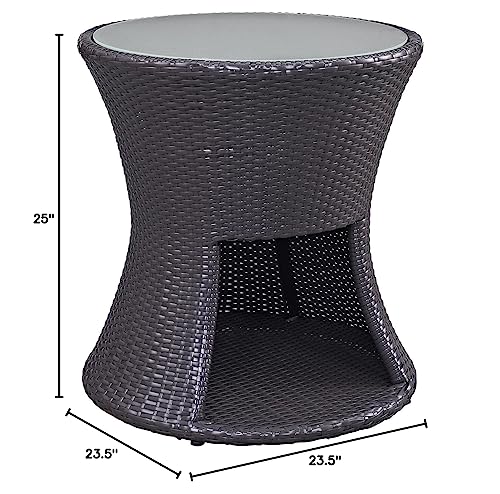 Play your way to a beat you can groove to. Strum is a small yet rhythmic piece that will accent your outdoor patio arrangement, while fashionably offering up an additional spot to land your beverage. Complete with a useful storage compartment and tempered glass top, Strum is a streamlined mixed coloration rattan piece that imparts a sweeping sense of joy and gladness of heart. Set Includes: One - Strum Side Table Product Dimensions: Overall Product Dimensions: 23.5"L x 23.5"W x 25"H Base Diameter: 21.5"L x 21.5"W Base to Top: 21.5"H Upper Part Opening Dimensions: 23.5"L x 23.5"W Square Opening: 11.5"L x 10.5 - 15.5"W Floor to Square Opening: 14"H