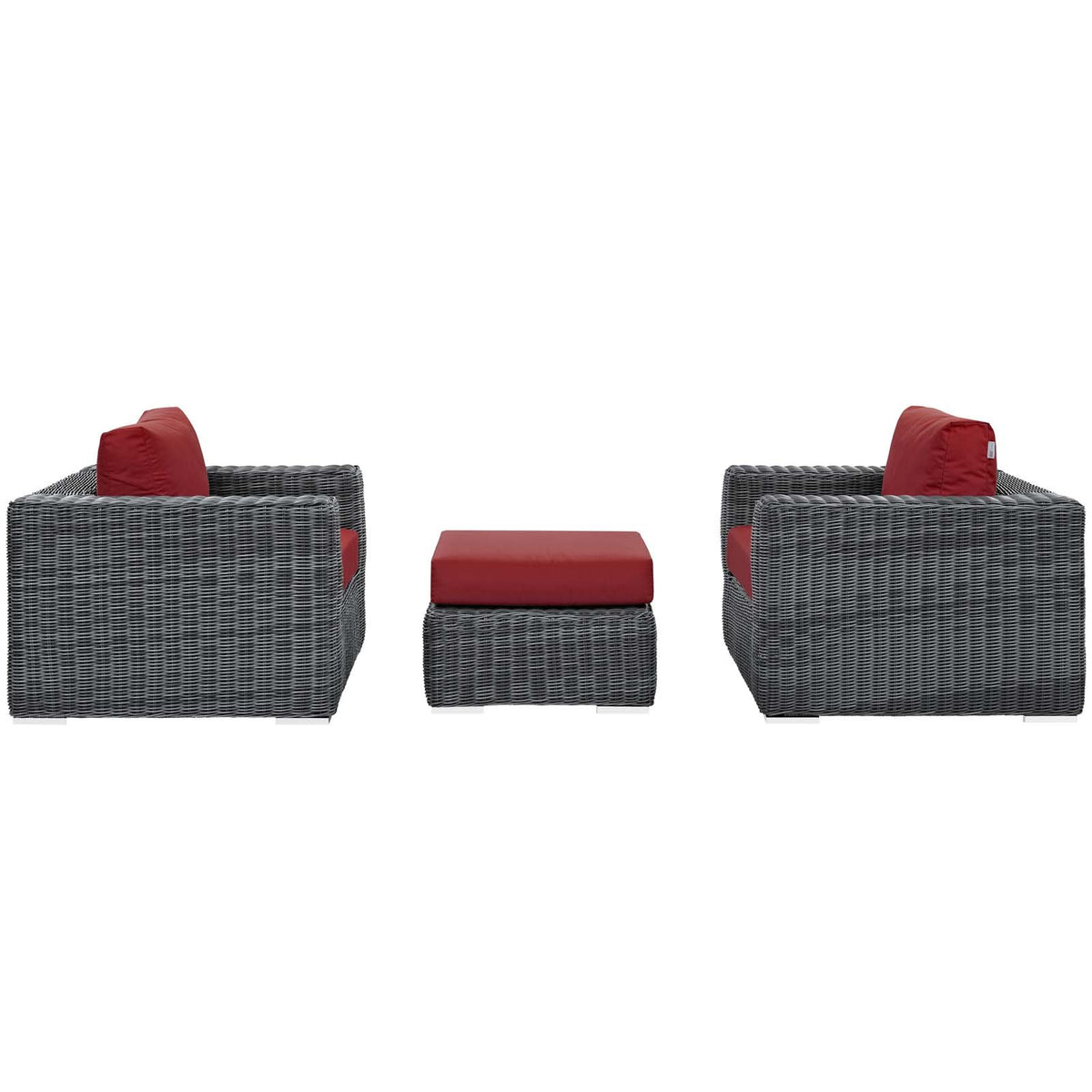 Modway Summon 3 Piece Outdoor Patio Sectional Set With Sunbrella Cushions In Canvas Red